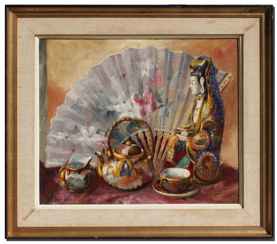 SUGER, Zsuzsanna, (Hungarian, 1939-): Asian Still Life, Oil on Canvas, 19 1/2'' x 23 1/2'', signed lower left, framed with minor wear, 24'' x 28''.