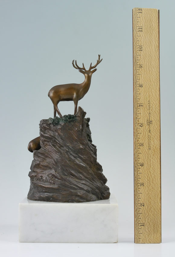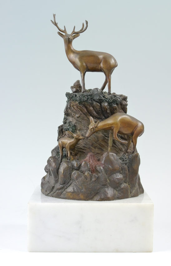 PARKER, Daniel Ray, (American, 1959- ): Deer Family Grouping, Bronze, 7 1/2'' h., incised signature, dated '74. Sold with white marble plinth.