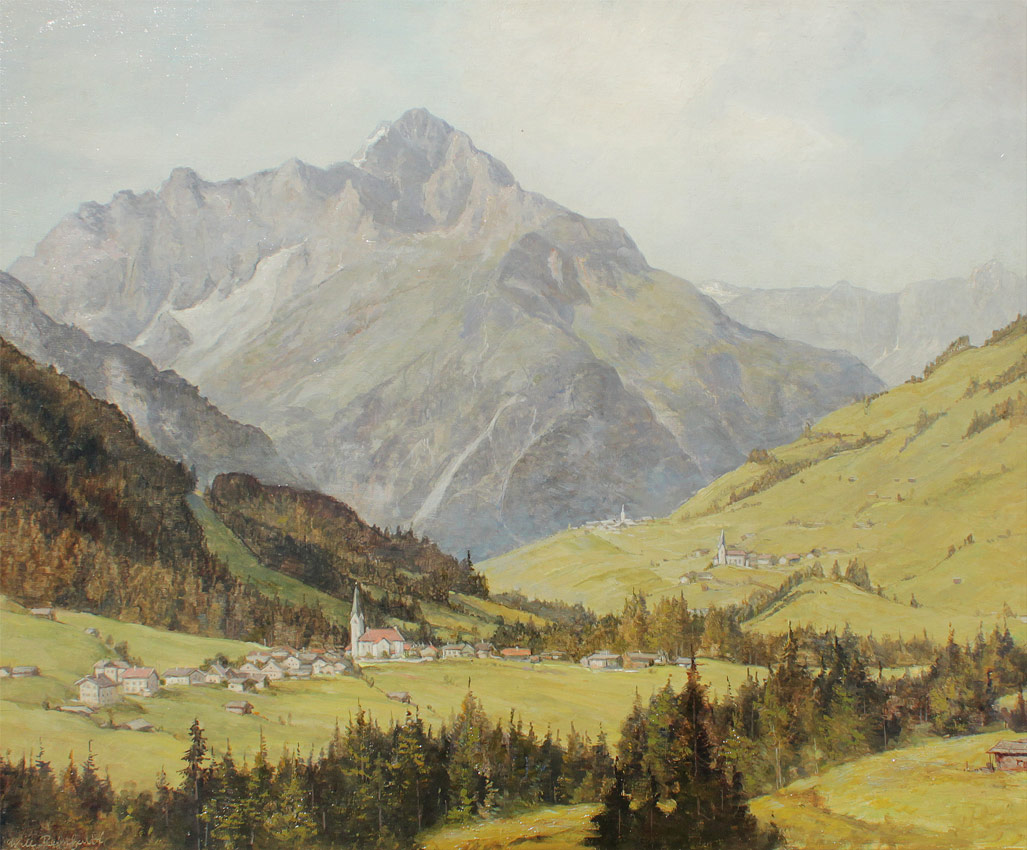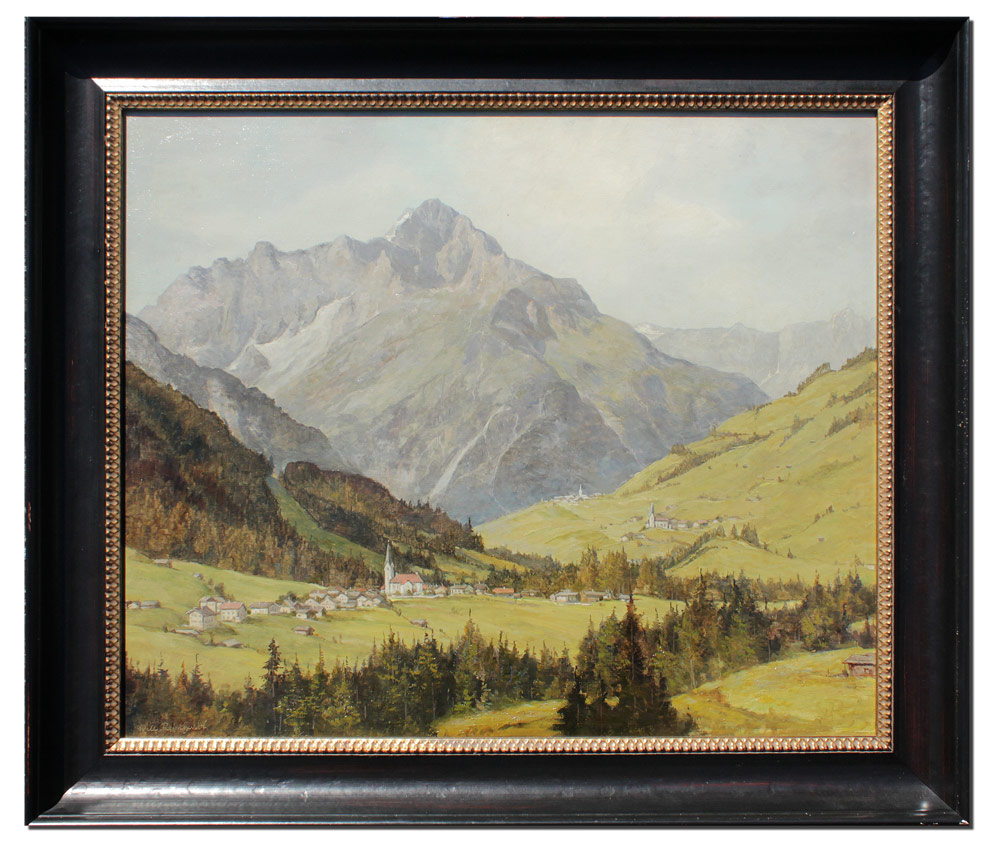 REINHARDT, Willy, (German, 1888-1970): Mountain Valley Landscape, Oil/Masonite, 19 3/4'' x 23 1/2'', signed lower left, encased in fine contemporary ebonized and gilded frame, 24'' x 27 3/4''. From the Collection of Professor Robert Bailey.