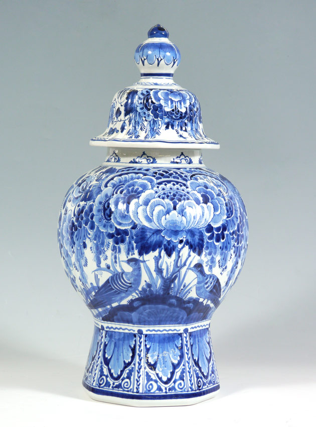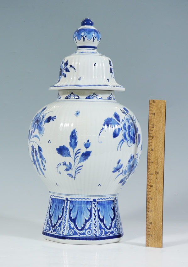 LARGE DELFT GINGER JAR: Blue and white, 19'' tall.