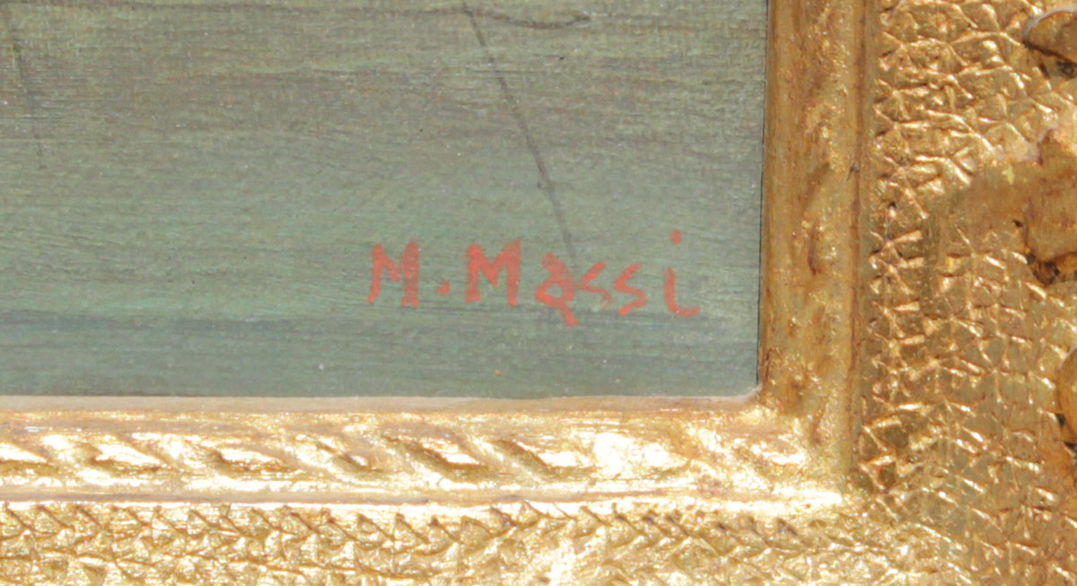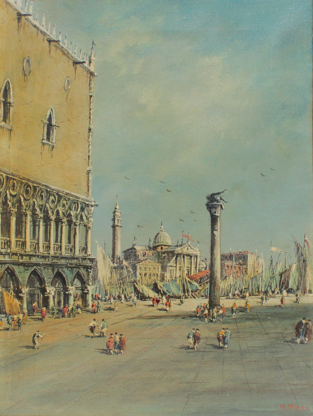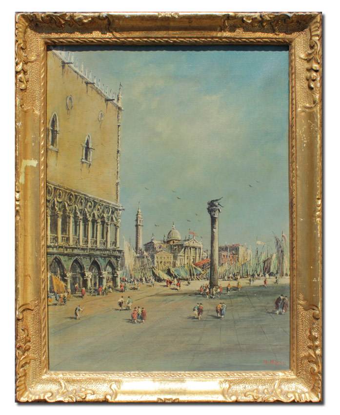 MASSI, (): Piazza San Marco, Oil/Canvas, 16'' x 12'', signed lower right, encased in a gilded gesso frame with wear 19 1/2'' x 14''.
