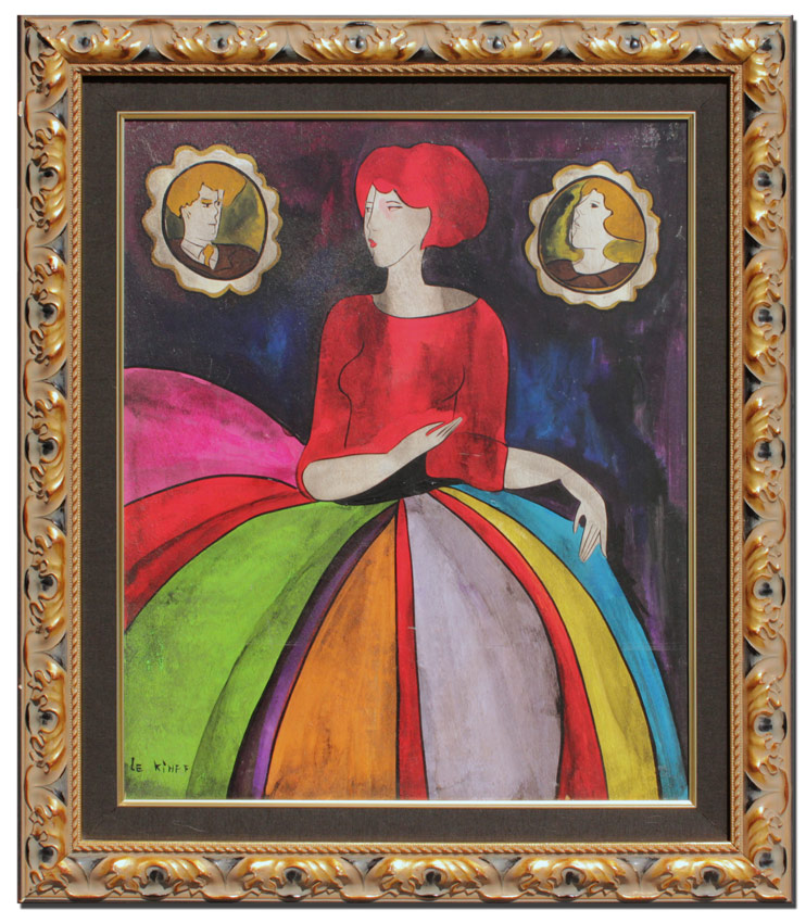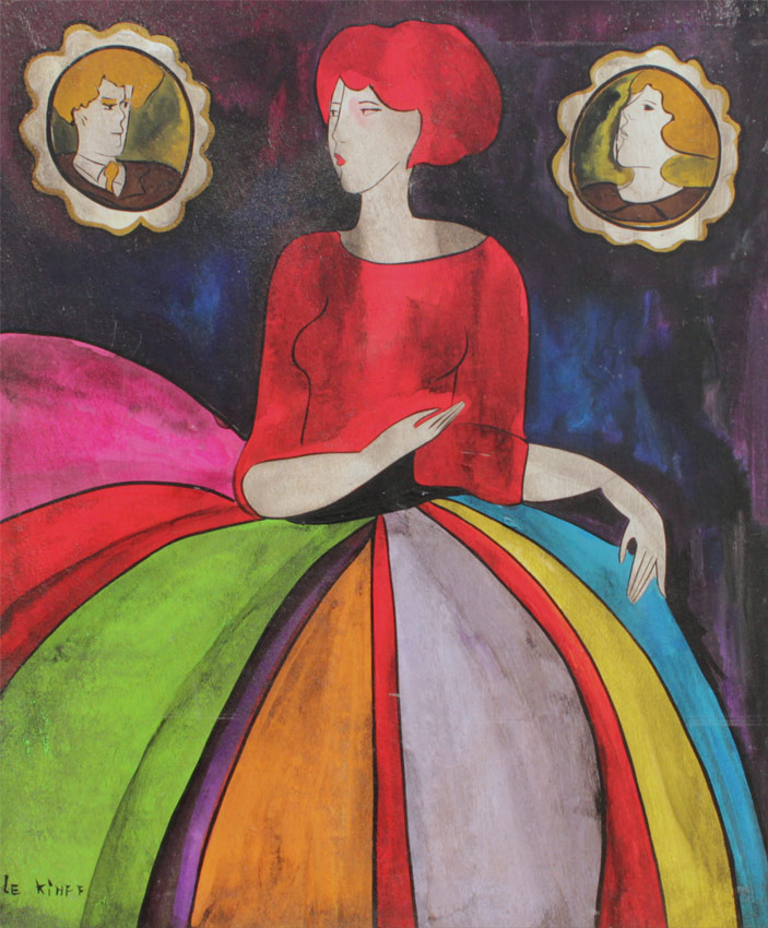 LE KINFF, Linda, (French, 1949- ): ''Famille'', Oil/Panel, 29'' x 24'', signed lower left, signed titled and date Paris verso, custom frame 37'' x 32''.