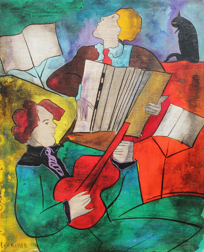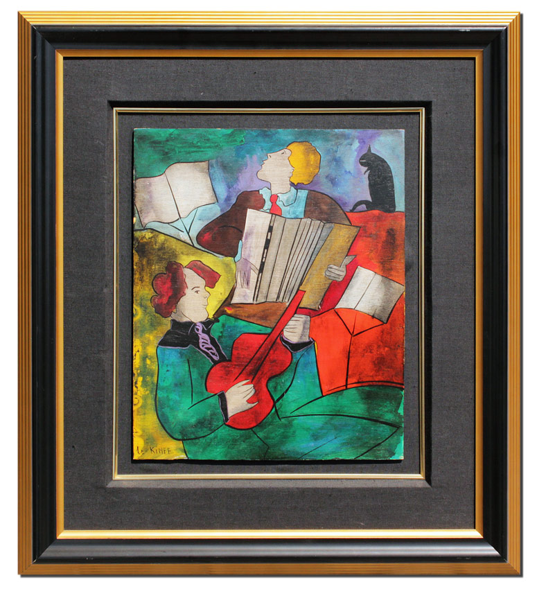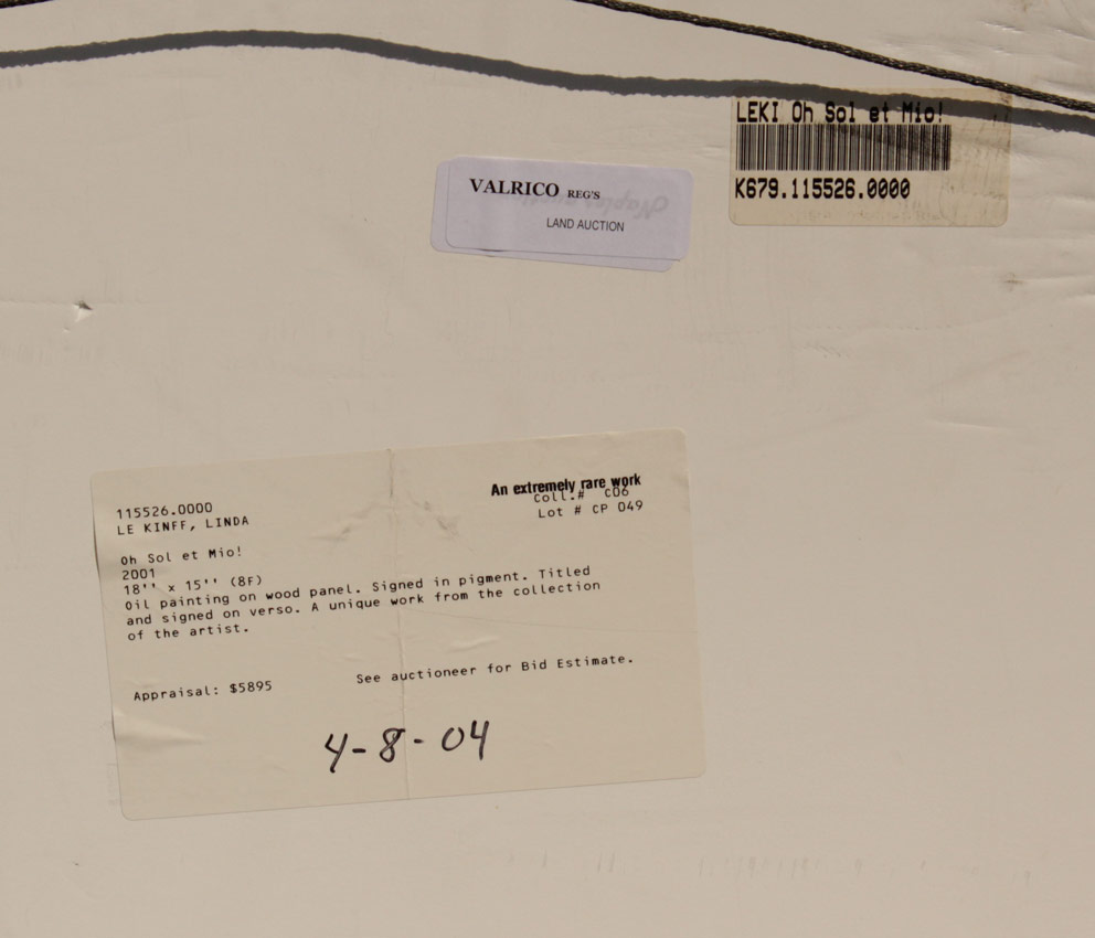LE KINFF, Linda, (French, 1949- ): ''Oh Sol et Mio'', Oil/Wood Panel, 18'' x 15'', signed lower right, custom frame 31'' x 28'', label verso indicates this is from the collection of the artist.