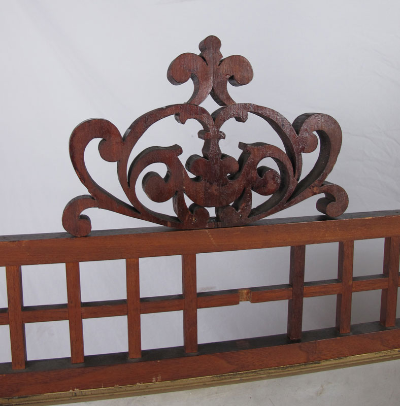 VICTORIAN 3 PANEL FOLDING SCREEN: Each panel trimmed with lattice work and cut crest, painted panels on all sides showing wild rose, dahlia, duck and cattail, hollyhocks, lilac, and girl with tambourine, center 65 1/2''h., end panels 58 1/4''h., each panel 20 3/4''w.