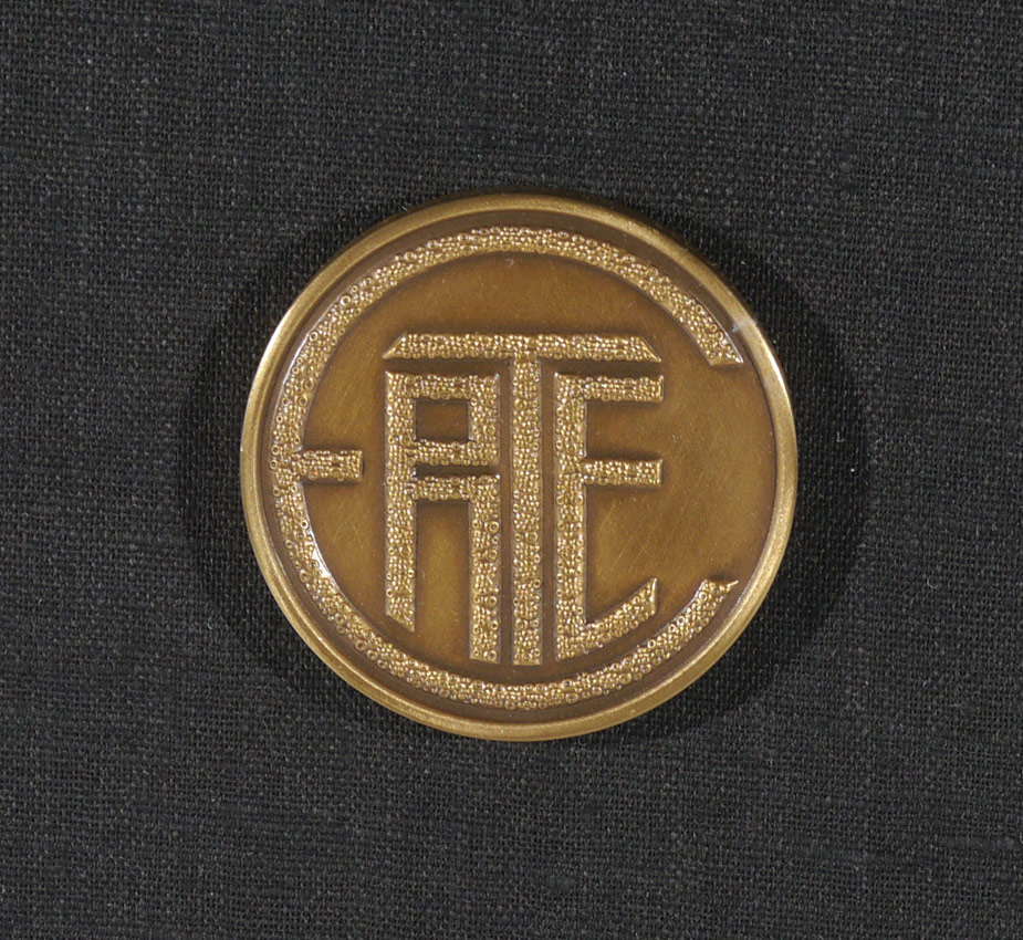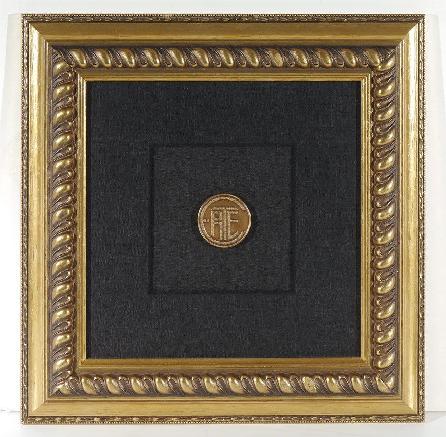 ERTE BRONZE MEDALLION: Circular, 2 1/4'' diameter, framed 17'' x 17''.