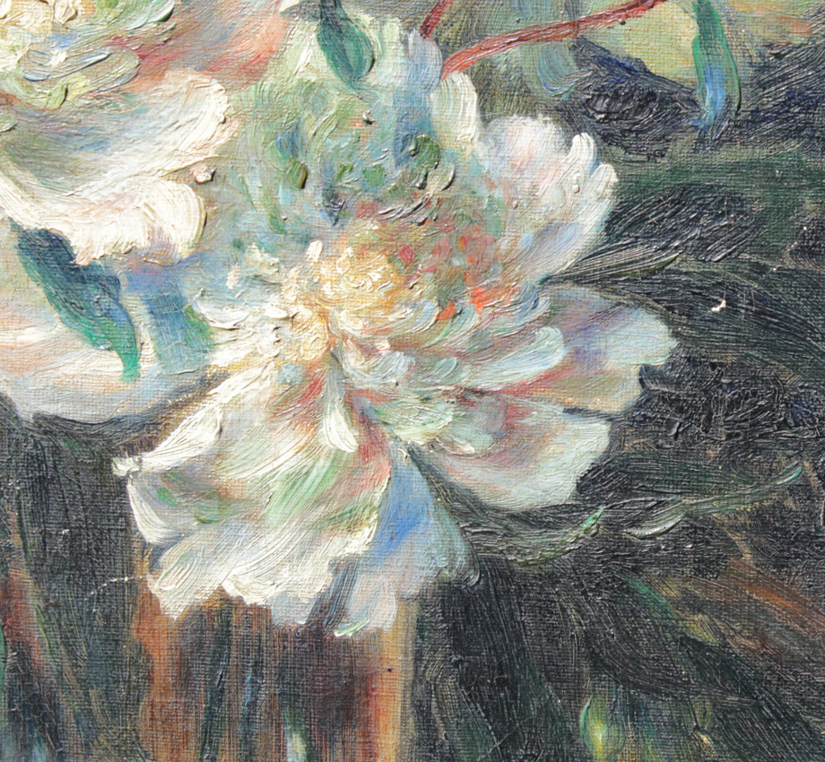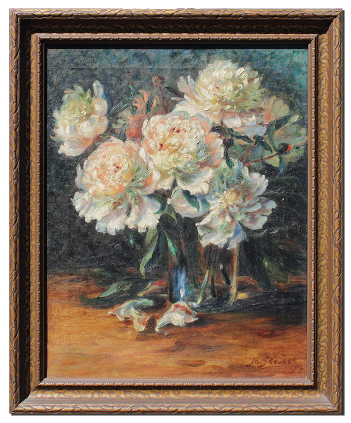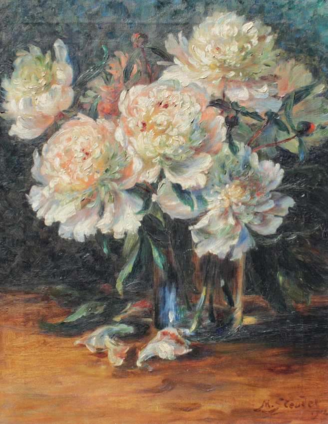 STEUDEL, Max, (German, 1873-): Floral Still Life of Chrysanthemums in a Glass Vase, Oil/Canvas, 20'' x 16'', signed lower right, dated 1912, encased in original frame 23 1/2'' x 19 1/2''.