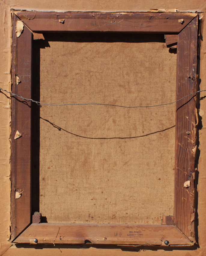 CONDITION: Stretcher bar wear, small fleck in the right margin with minor abrasion, needs cleaning.