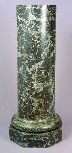FAUX MARBLE PAINTED METAL PEDESTAL: 43 1/2'' tall, approx 12 1/2'' dia at the top and 17 1/2'' dia. at the bottom. Approx. 30lbs.