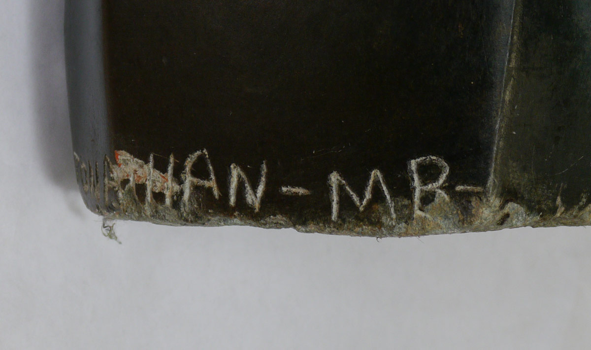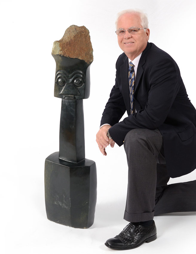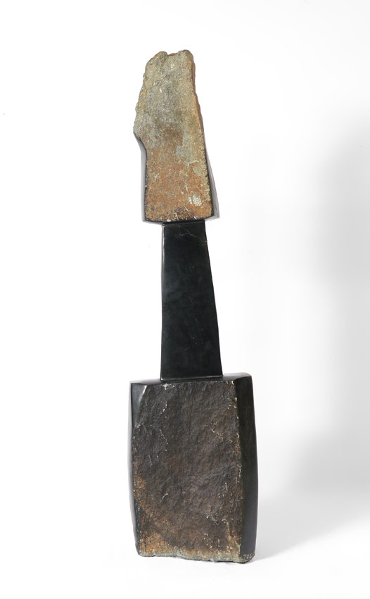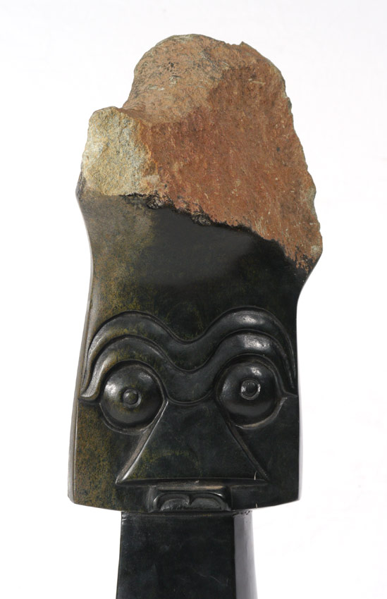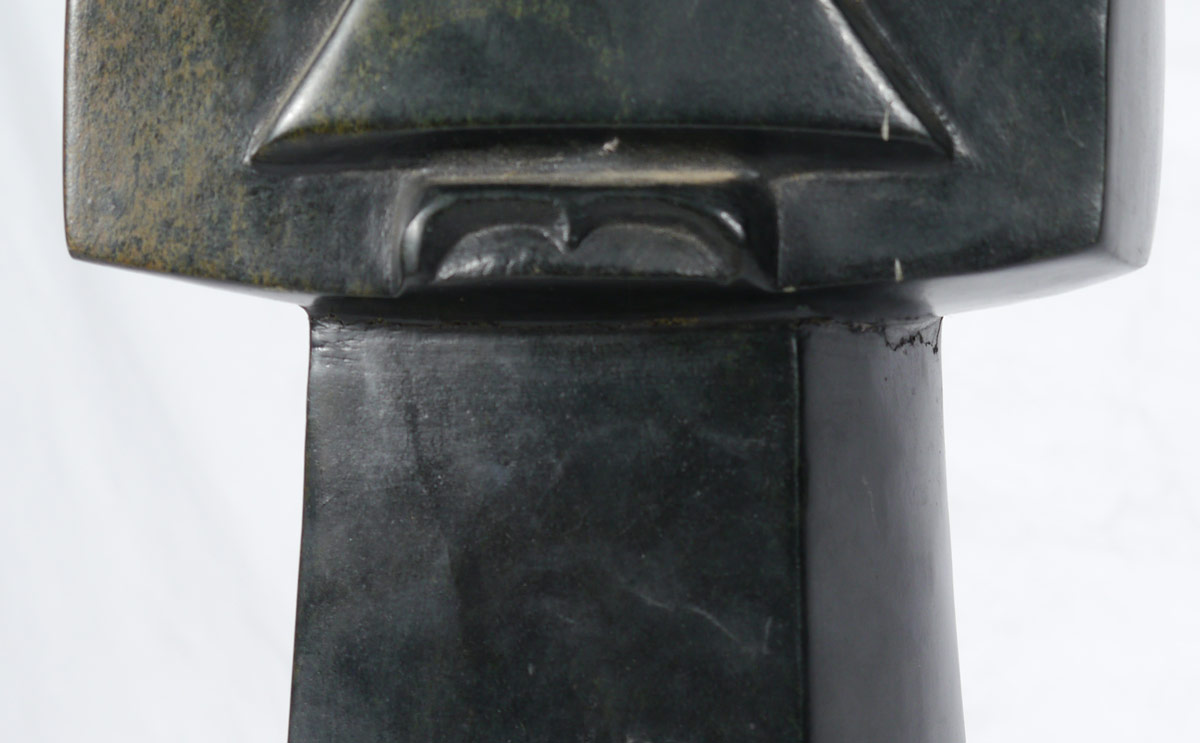 LARGE SHONA STONE CARVING: Figural abstract bust, signed Jonathan MB. Overall measures 38'' h. x 9 1/4'' x 5 1/2''.