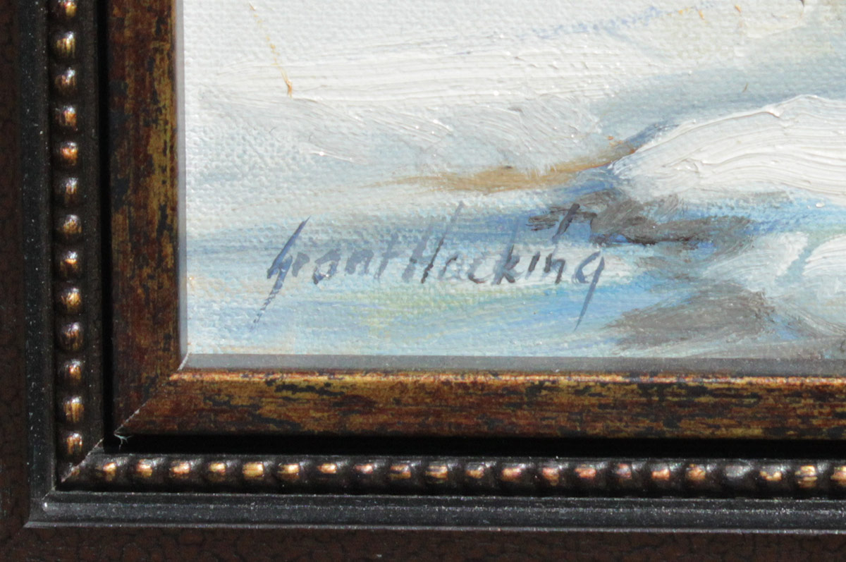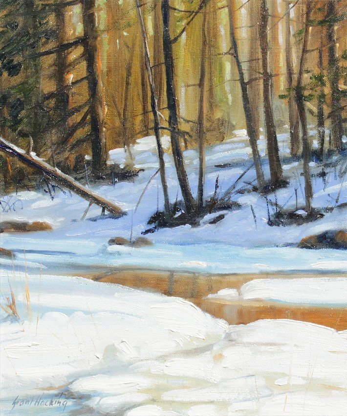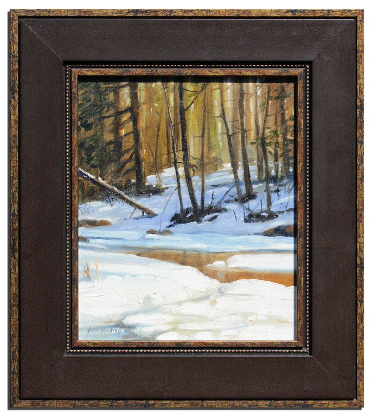 HACKING, Grant, (American, 1964- ): Peaceful Winter Stream in a Forest, Oil/Canvas, 12'' x 10'', signed lower left, custom frame 17 1/2'' x 15 1/2''.