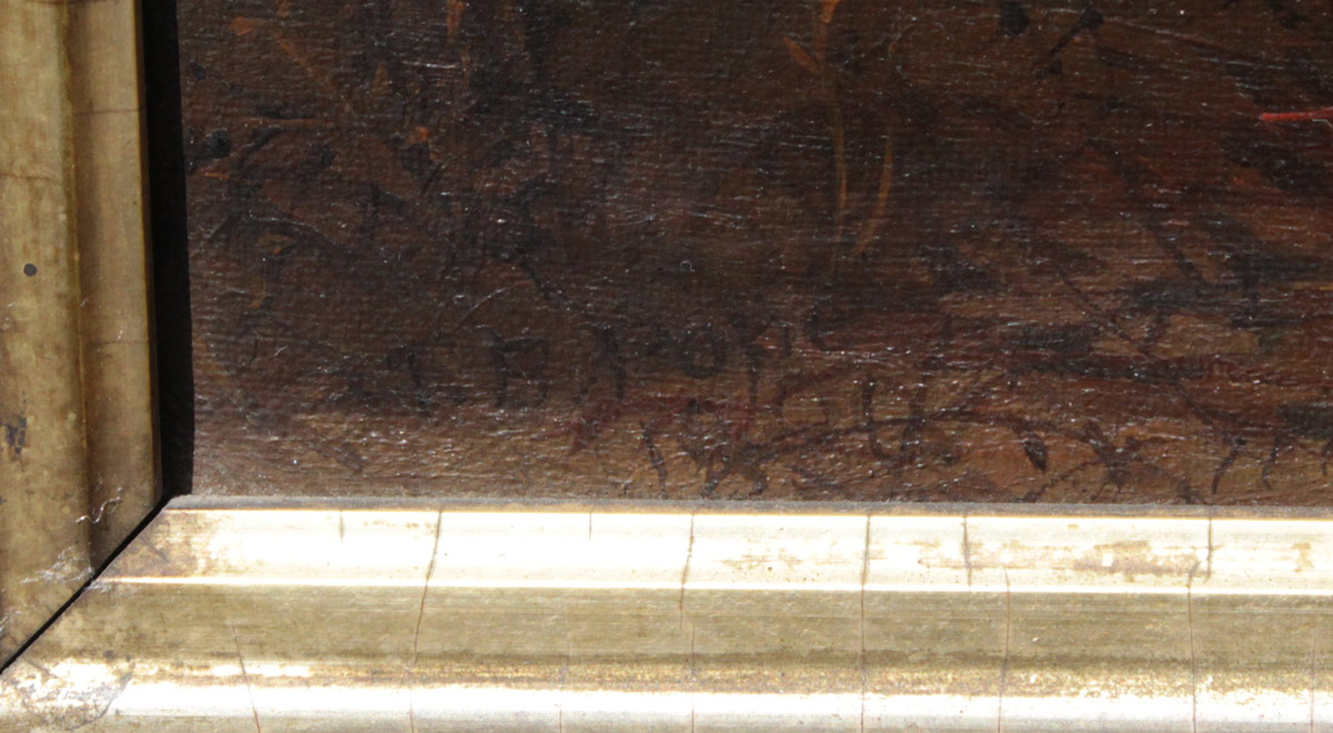 POPE, Thomas Benjamin, (American, 1834-1891): Hudson River/White Mountain Landscape with Cattle Crossing River and Mountains in the Distance, Oil/Canvas 18'' x 24'', signed lower left, dated 1880, encased in period gilded gesso frame with wear, 27'' x 33''.