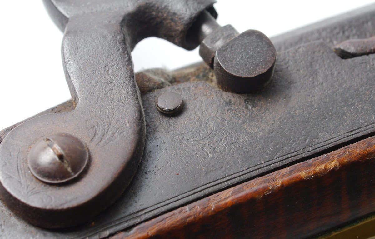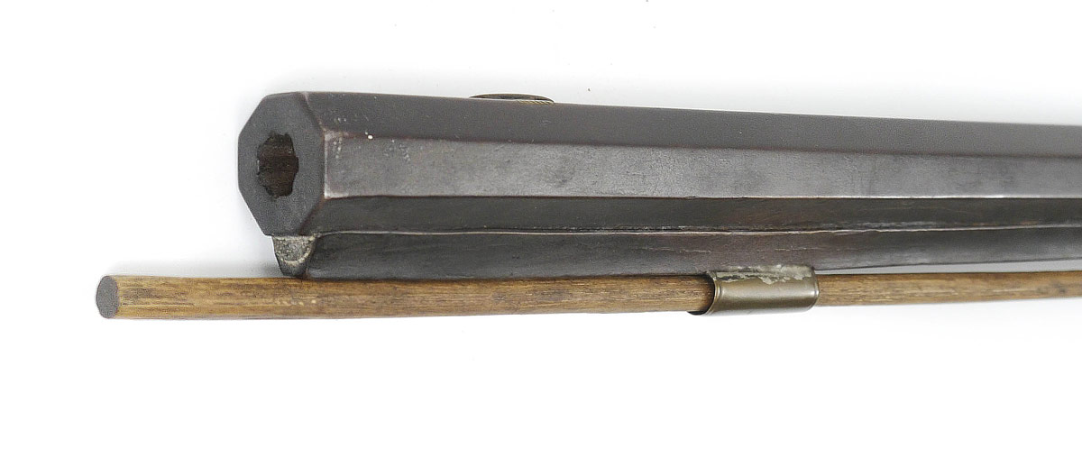 CONDITION: Replacement rod, typical surface powder marks on lockplate and barrel at nipple, bend to patchbox cover.