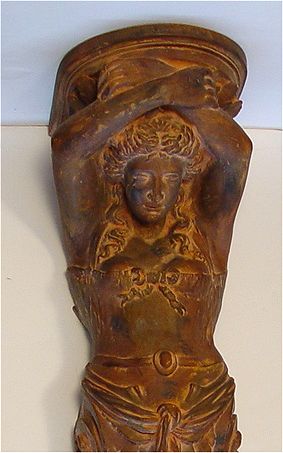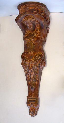 DECORATIVE SCONCE IN THE FORM OF A FIGURE HEAD: Contemporary resin maiden is lightweight for ease of hanging, 53''h. 13'' deep, 14'' wide.