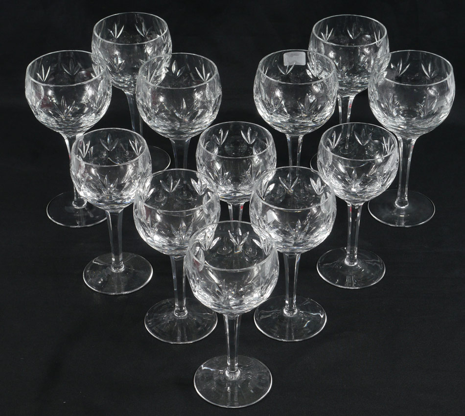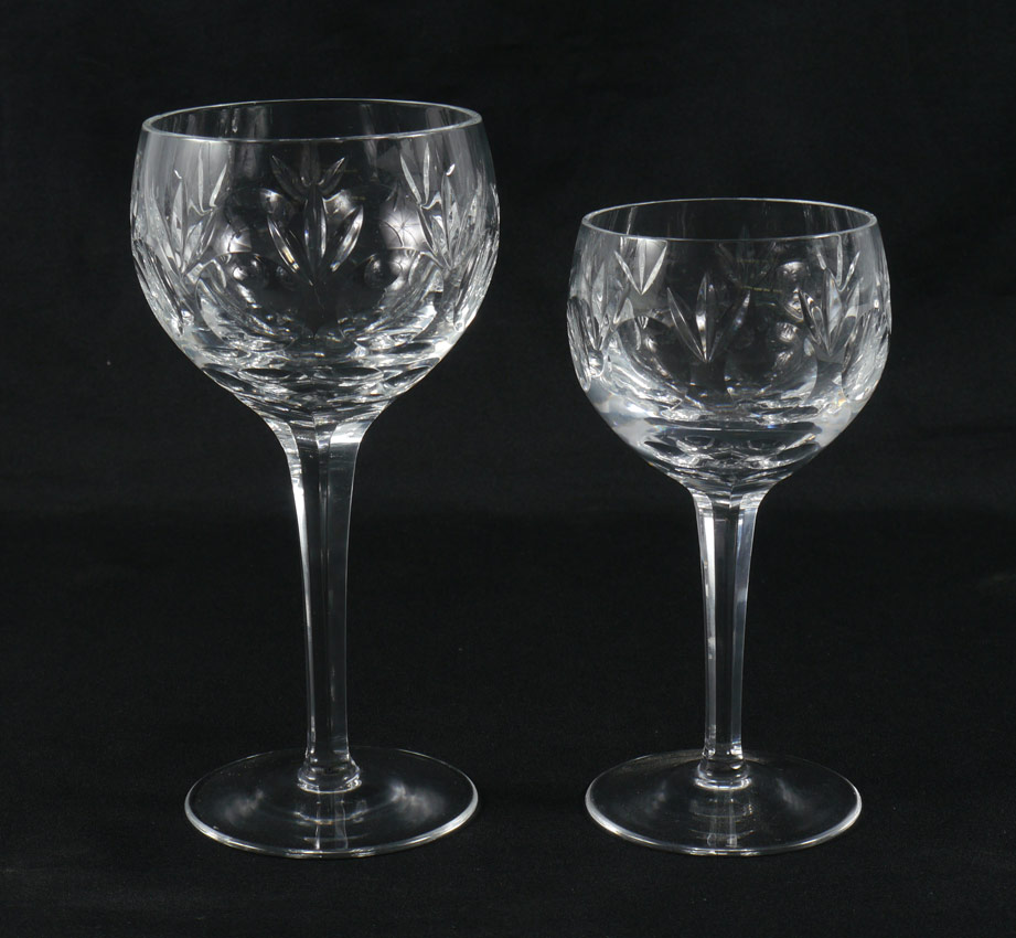 12 CRYSTAL WINE HOCK STEMS: Waterford quality, to include 6 each of 6 5/8'' and 7 5/8''.
