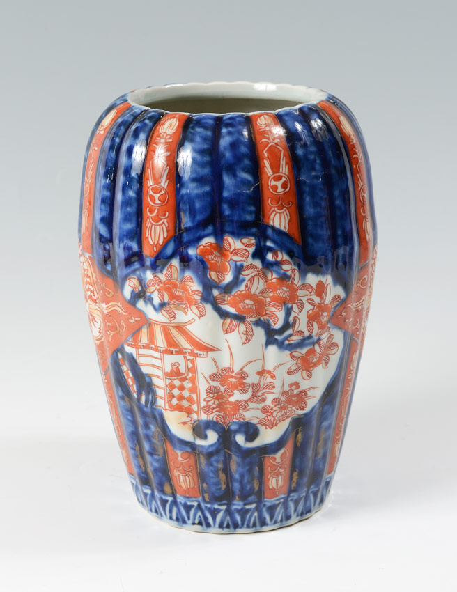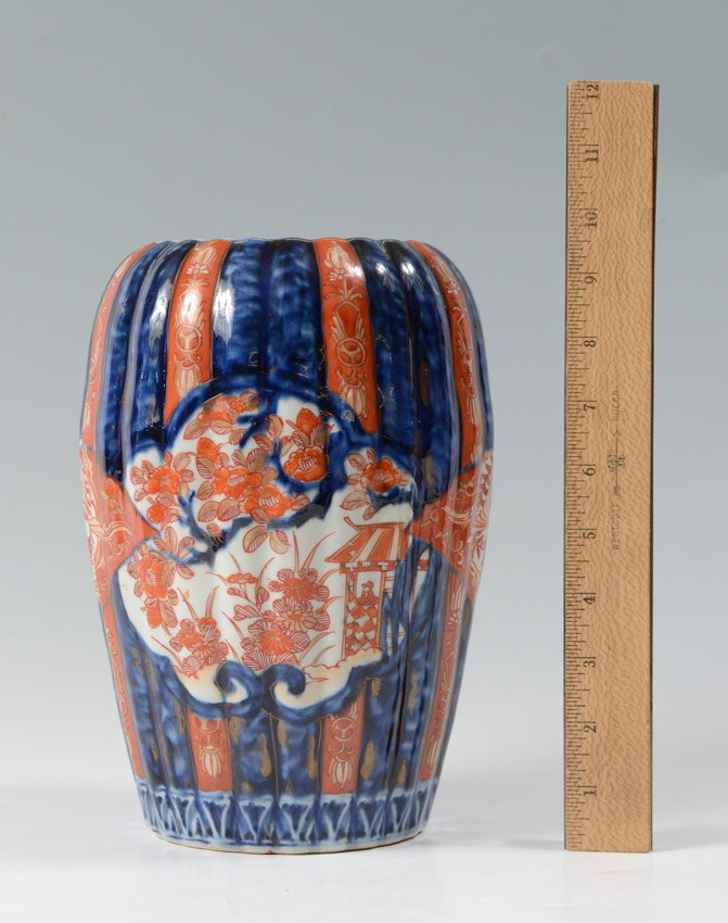 RIBBED JAPANESE IMARI VASE: Unsigned, 10'' h. x 6 1/2''.