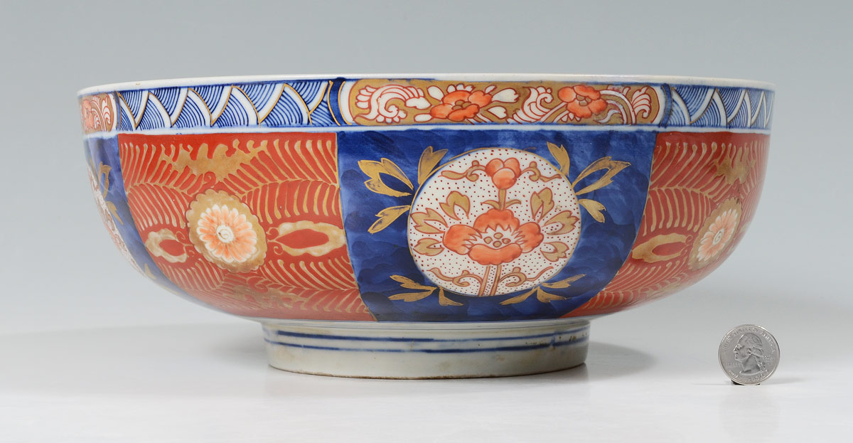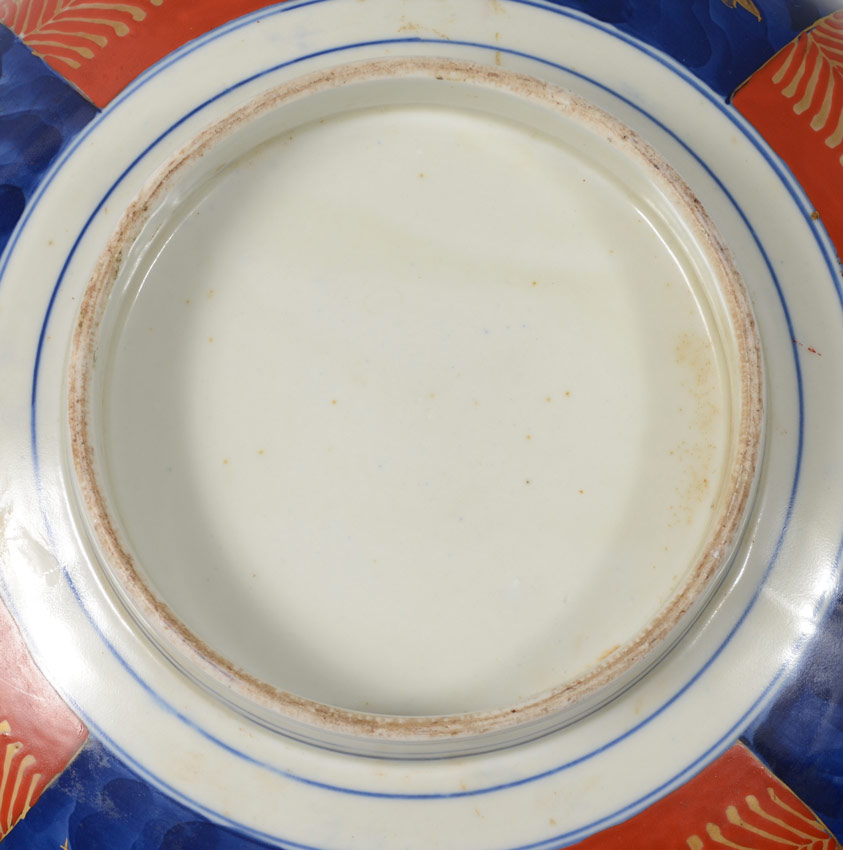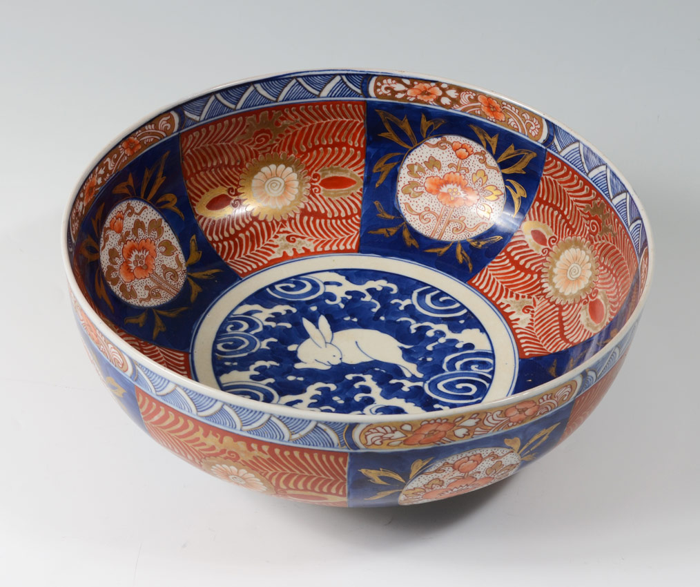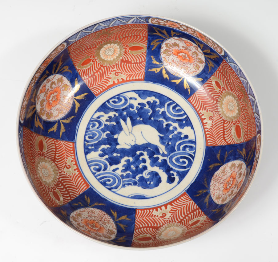 FOOTED JAPANESE IMARI BOWL WITH RABBIT CENTER: Unsigned, 4 3/4'' x 12 1/4'' diameter