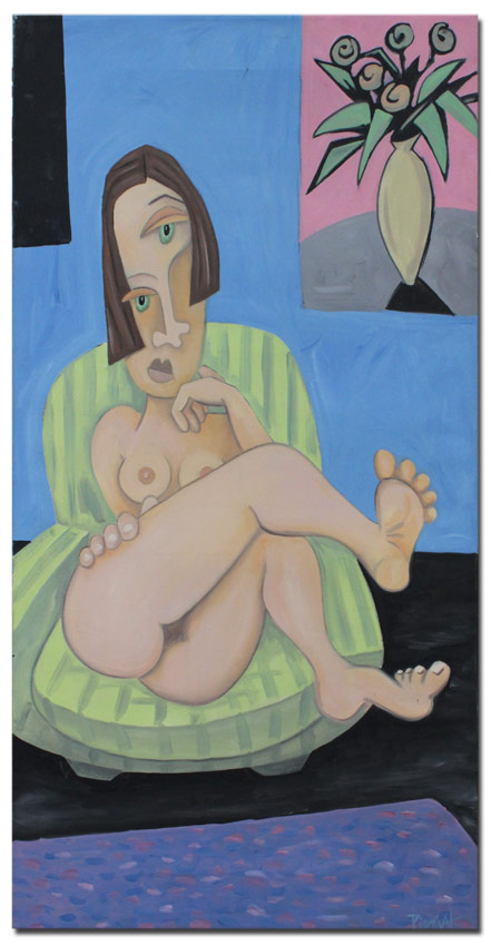 CUBIST NUDE PAINTING BY PIENIAK: Picasso Like Female Nude Seated in a Chair, Oil/Canvas, 49 1/4'' x 26'', signed lower right, unframed.