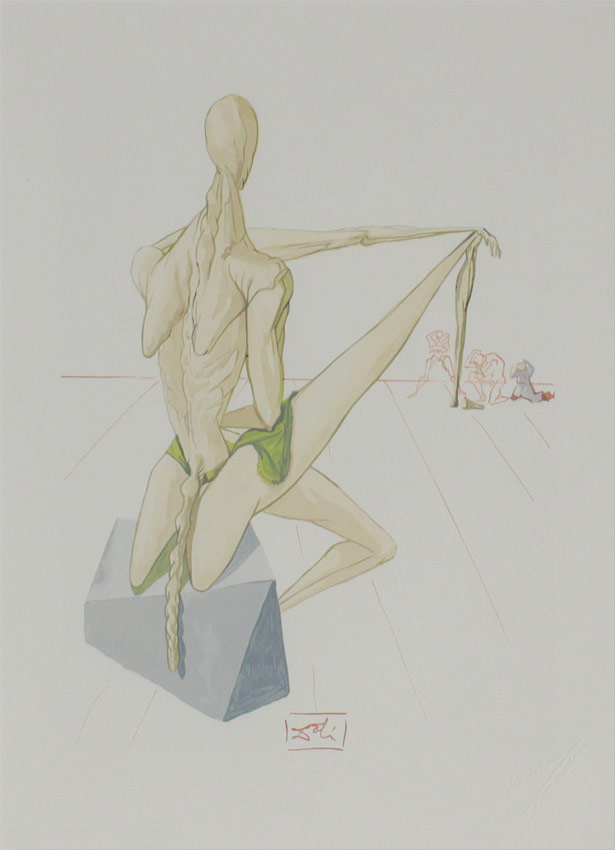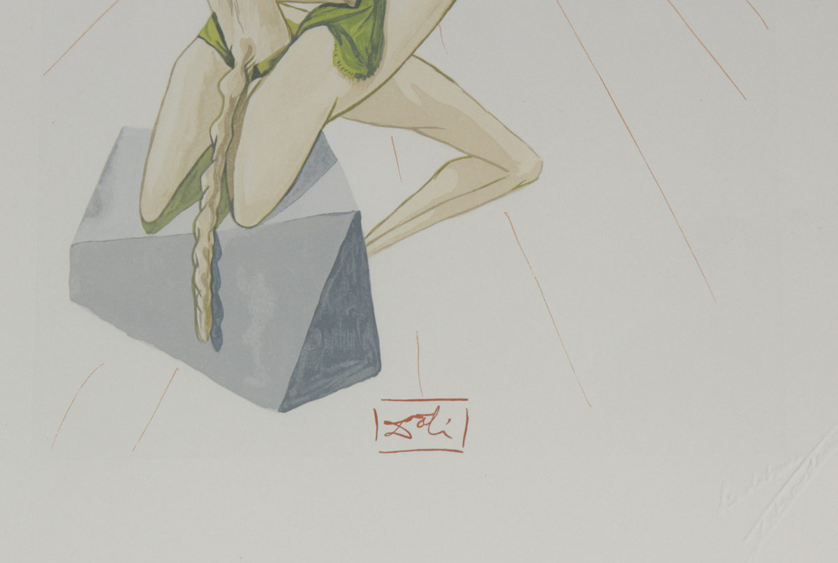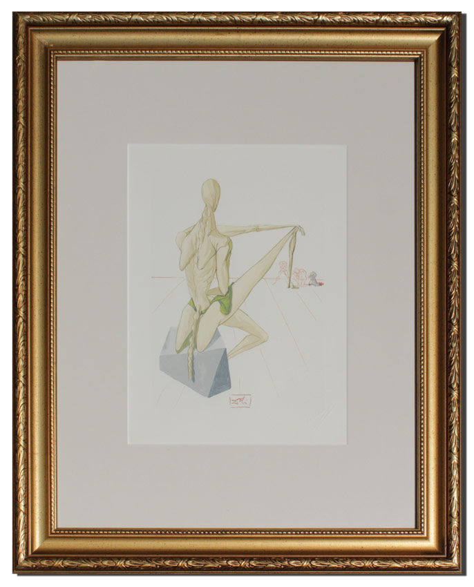 SALVADOR DALI? SURREAL PRINT: Sight size 12 1/2'' x 9 1/2'', signed in the plate, Estrade Blind Stamp lower right, contemporary frame 23 1/2'' x 19 1/2''.