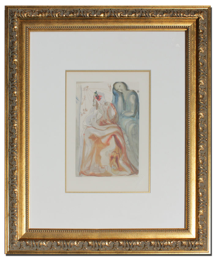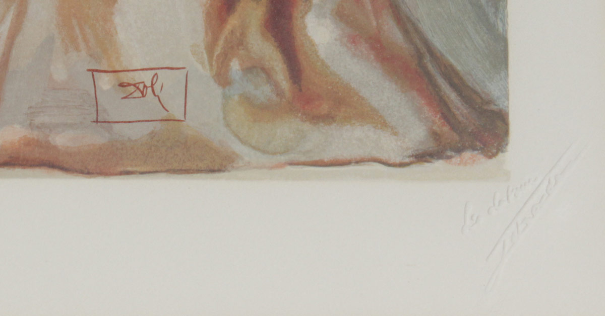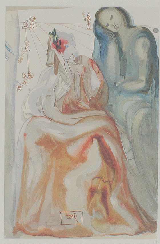 SALVADOR DALI? DIVINE COMEDY/PURGATORY 32: 13'' x 10 1/4'', signed in the plate Estrade Blind Stamp over right, hinge mounted, encased in fine contemporary framing 26'' x 22 1/4''.