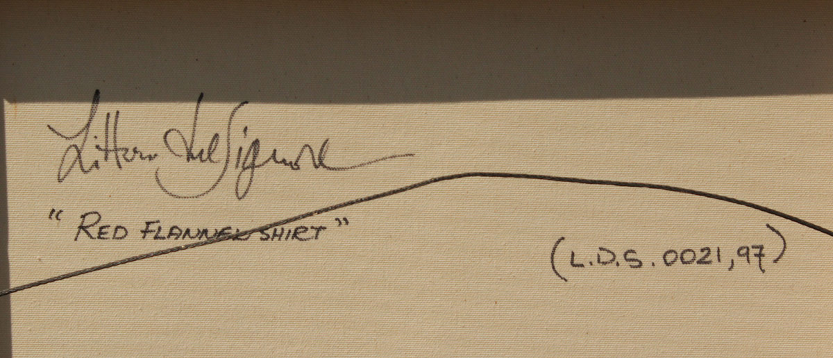 DELSIGNORE, Littorio, (Canadian, 1938- ): ''Red Flannel Shirt'', Oil/Canvas, 30'' x 20'', signed lower right, signed and titled verso, dated '97, custom frame 40'' x 30'', sold with original Park West Appraisal from 1998.