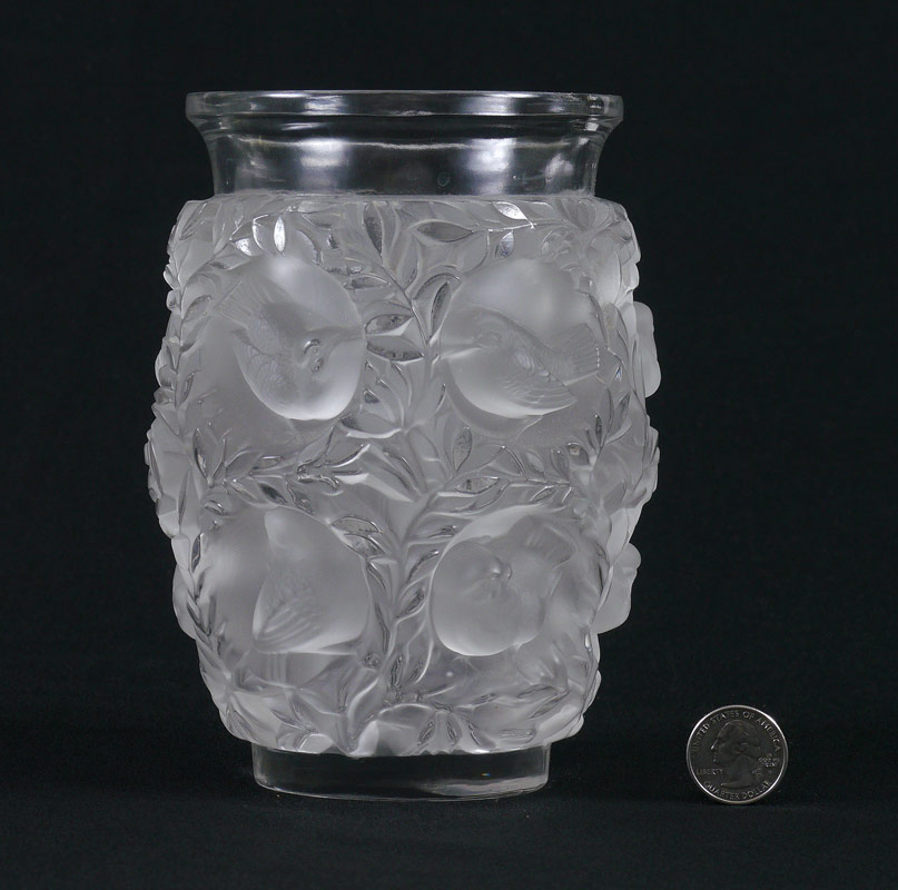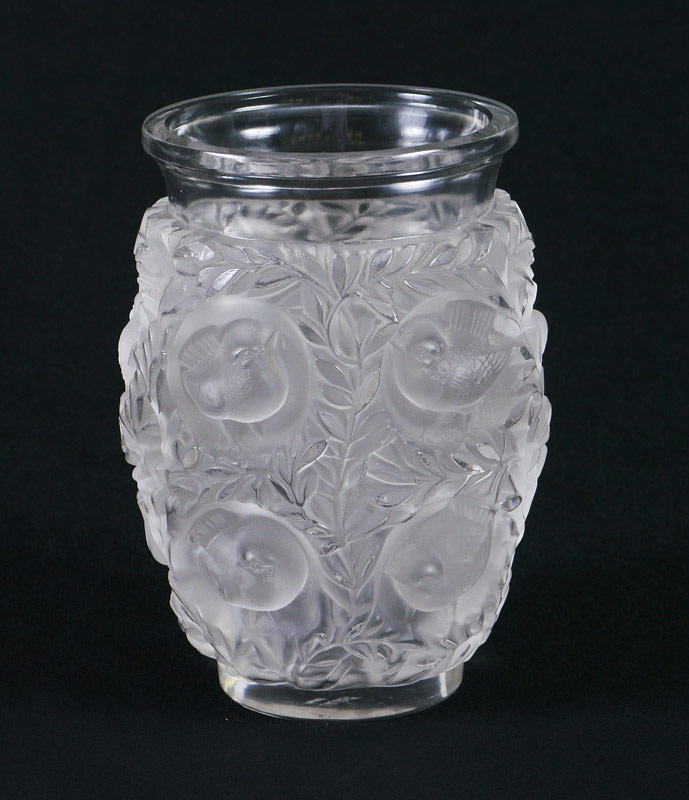 LALIQUE BAGATELLE BIRD VASE: Signed on base Lalique, France. 6 3/4'' h. x 5'' dia.