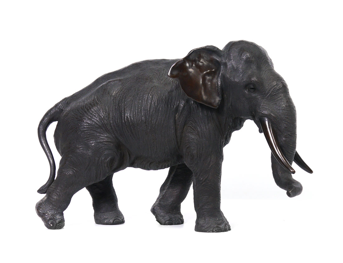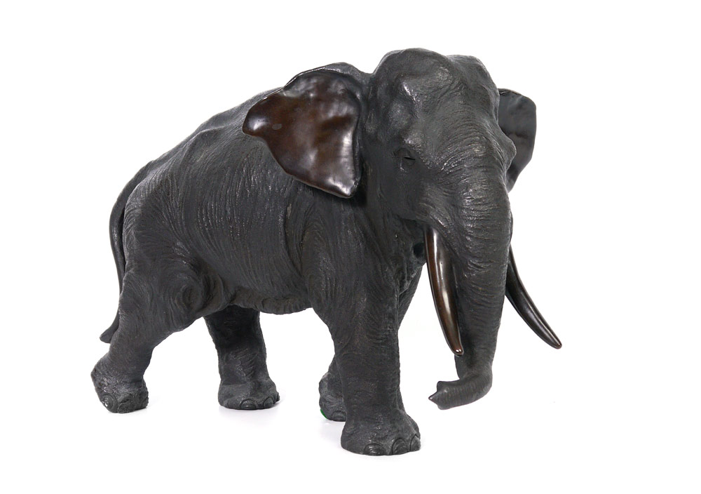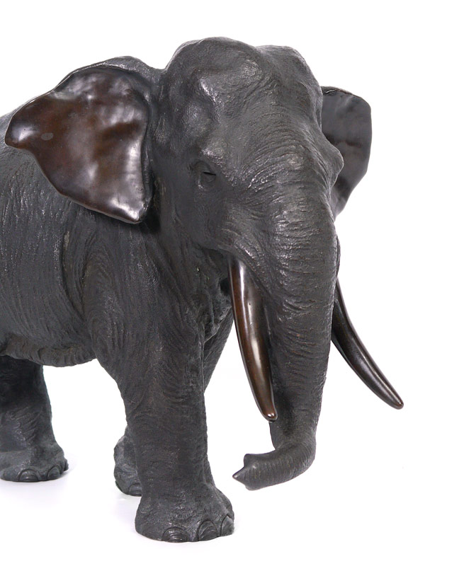 MAGNIFICENT JAPANESE BRONZE ELEPHANT: Signed on underside. 13 7/8''h x 21''