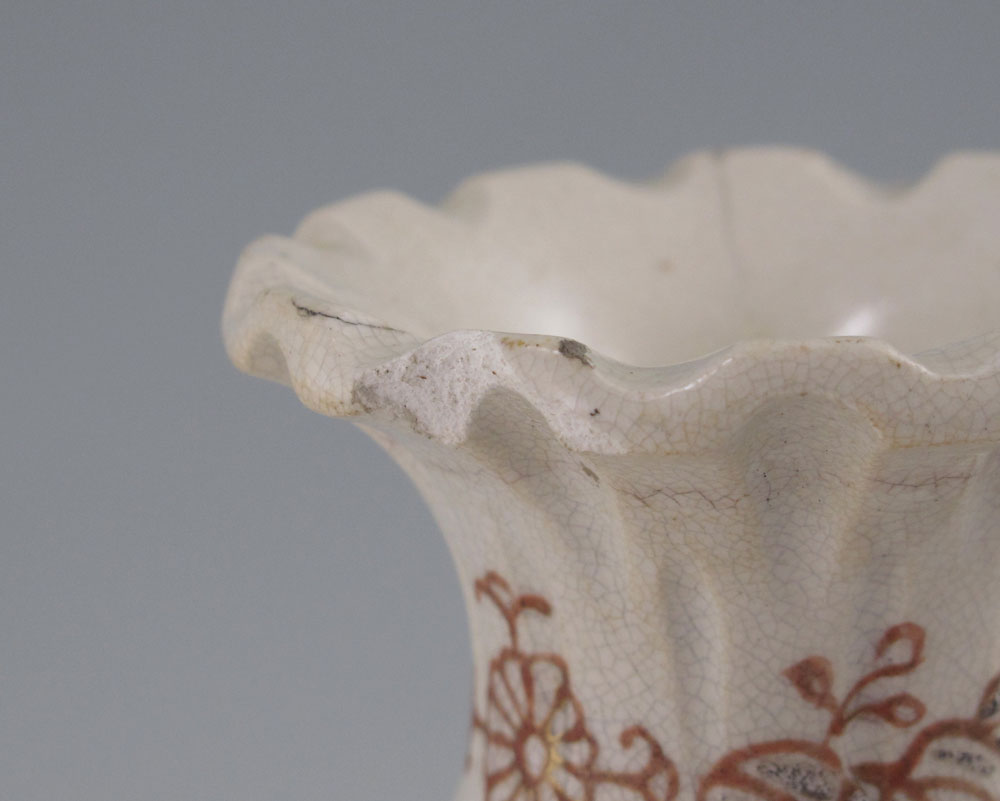 5 PIECE GROUP JAPANESE SATSUMA: To include 1) Vase, 6'' h. x 4 1/2''. 2) Vase with warriors, note under rim chip. 7'' h. 3) Bowl with landscape design interior, signed, 3 1/4'' x 8 1/2''. 4) Teapot, 2 1/2'' x 4''. 5) Salt and pepper shakers, 3'' h.