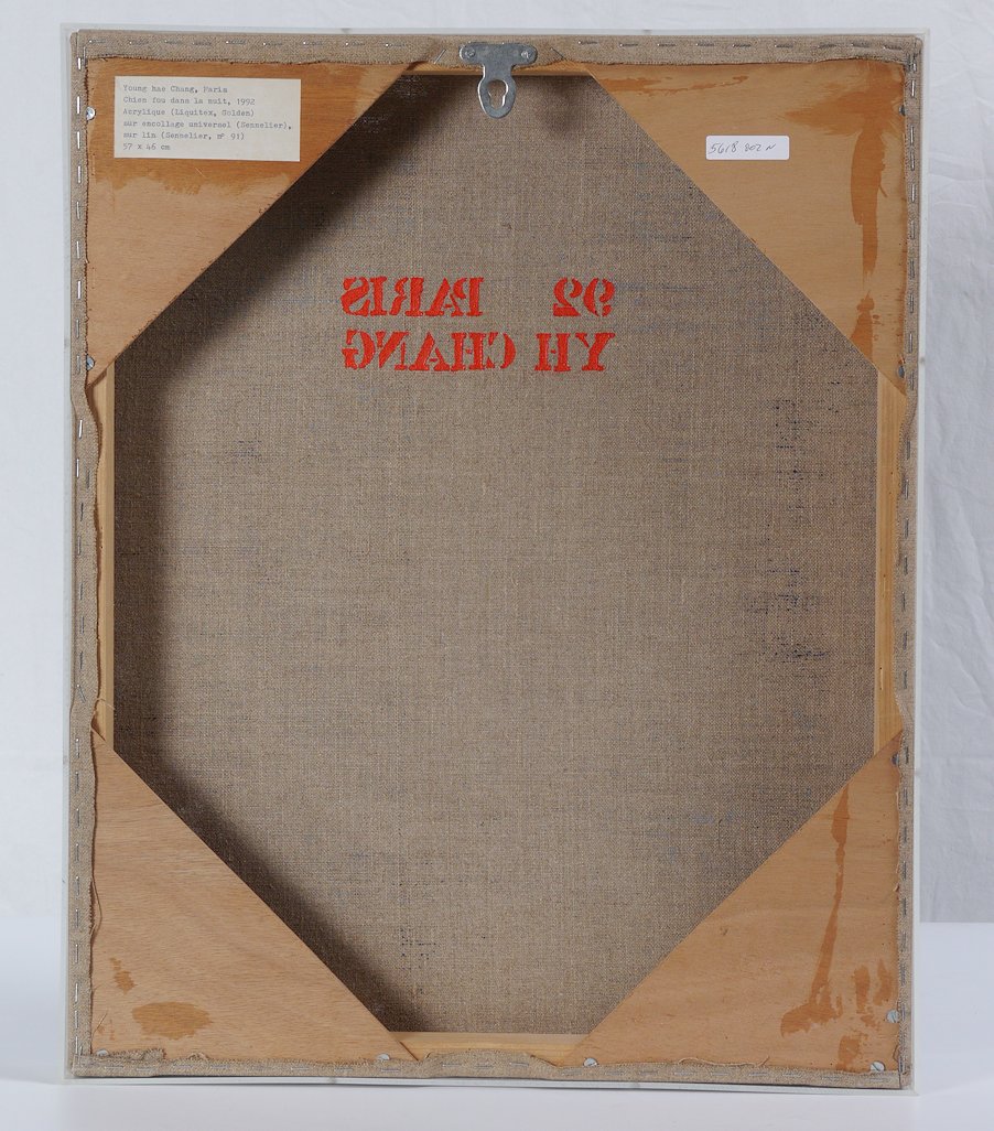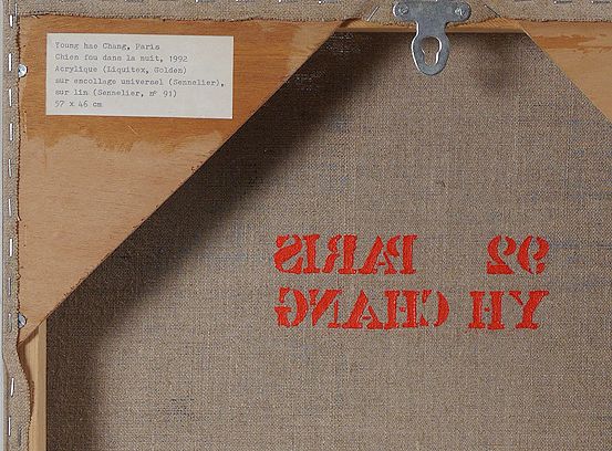 CHANG, Young-Hae, (Chinese, 20th Century): ''Chien Fou Dans la Nuit'', 1992, Acrylic/Canvas, 22 3/8'' x 18 1/4'', signed and dated '92 Paris with original label affixed verso, encased in custom plexiglass frame.