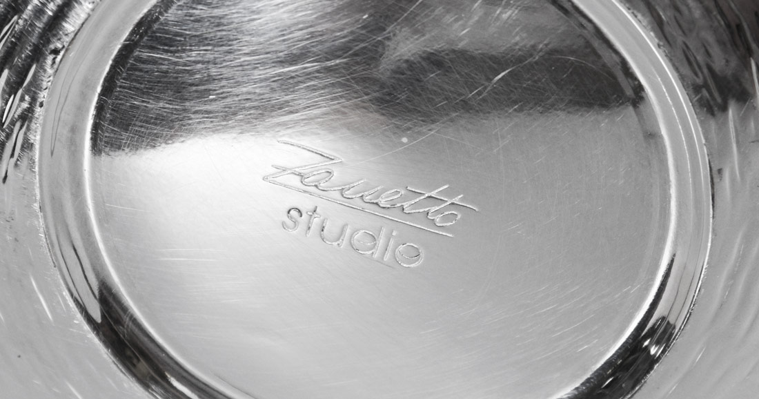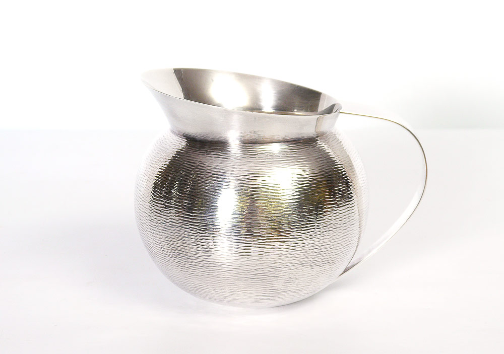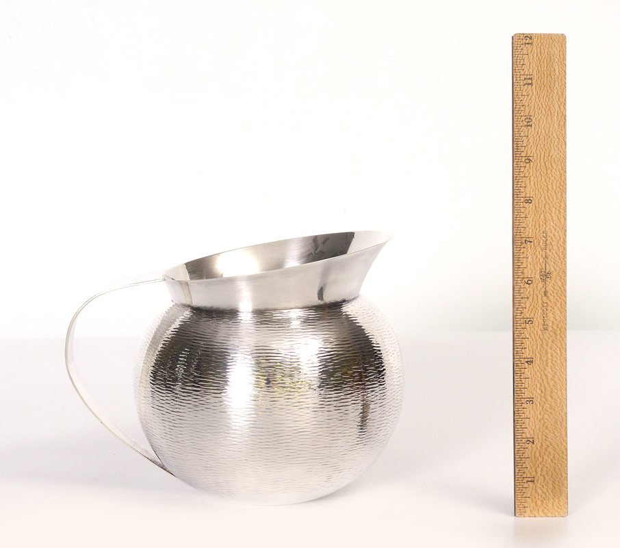 ZANETTO PASSIONI MAIA SILVERPLATE PITCHER: Threaded design body, Maia pattern, by Italian designer Zanetto. Currently available retails $731. Measures 7'' h. x 8 3/4''.