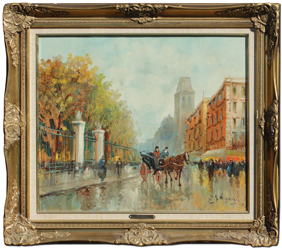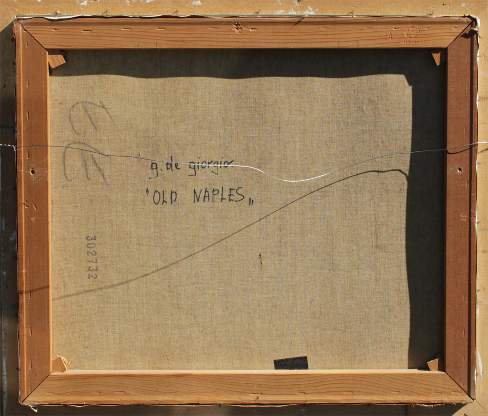 GIORGIO, Guglielmo de, (Italian, 1934- ): ''Old Naples'', Oil/Canvas, 20'' x 24'', signed lower left, dated '71, titled verso, encased in carved foliate motif style frame 26 1/2'' x 31'' x 2 1/2''.