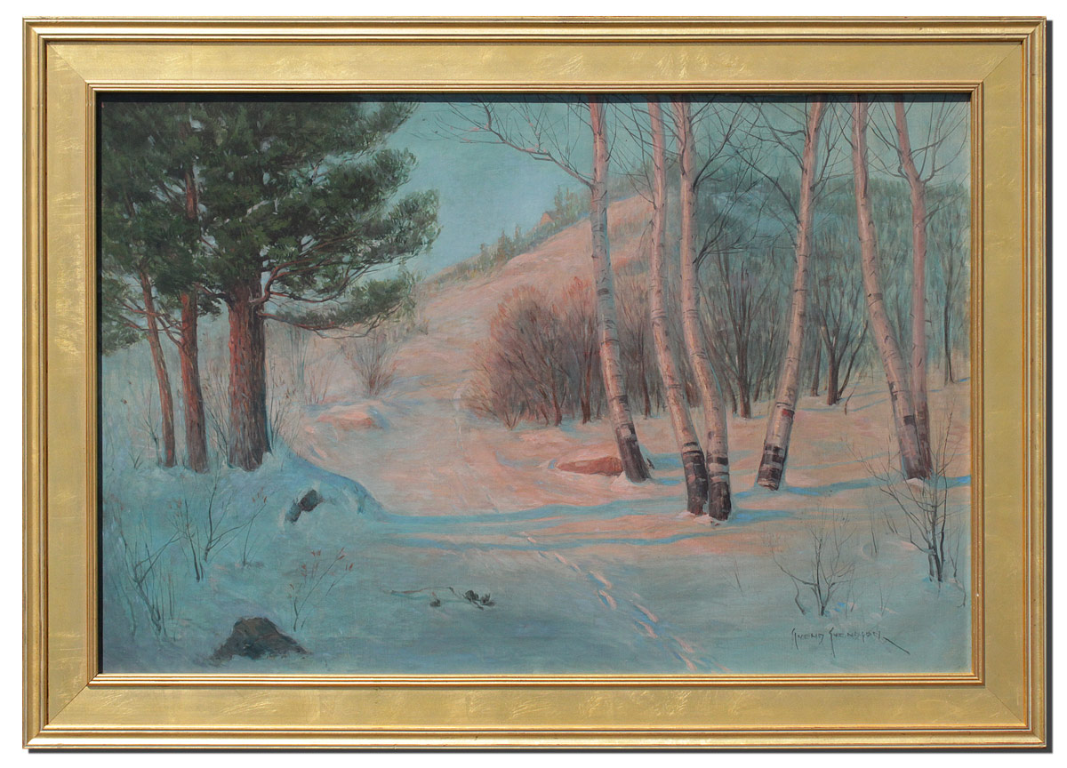SVENDSEN, Svend Rasmussen, (American, 1864-1945): Sunset Glow on the Winter Hillside Trail, Oil/Canvas, 24 1/4'' x 36 1/4'', signed lower right, fine contemporary gilded frame 30 1/2'' x 42 1/4''.