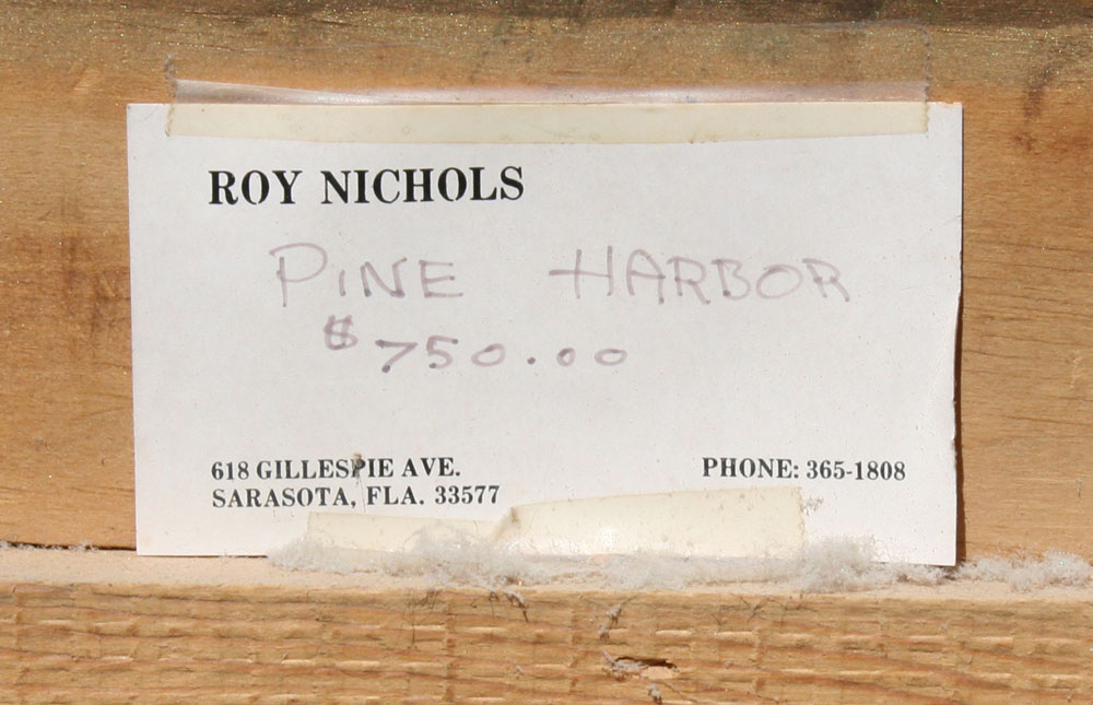 NICHOLS, Roy, (American, 20th C.): ''Pine Harbor,'' Florida, OIL/Canvas, sight size 30'' x 40'', signed and dated '80, Roy Nichols business card affixed verso with title and price of 750, framed 37'' x 47''.