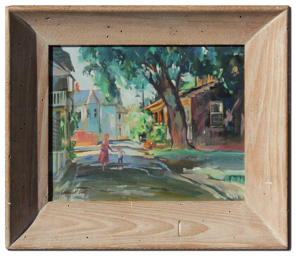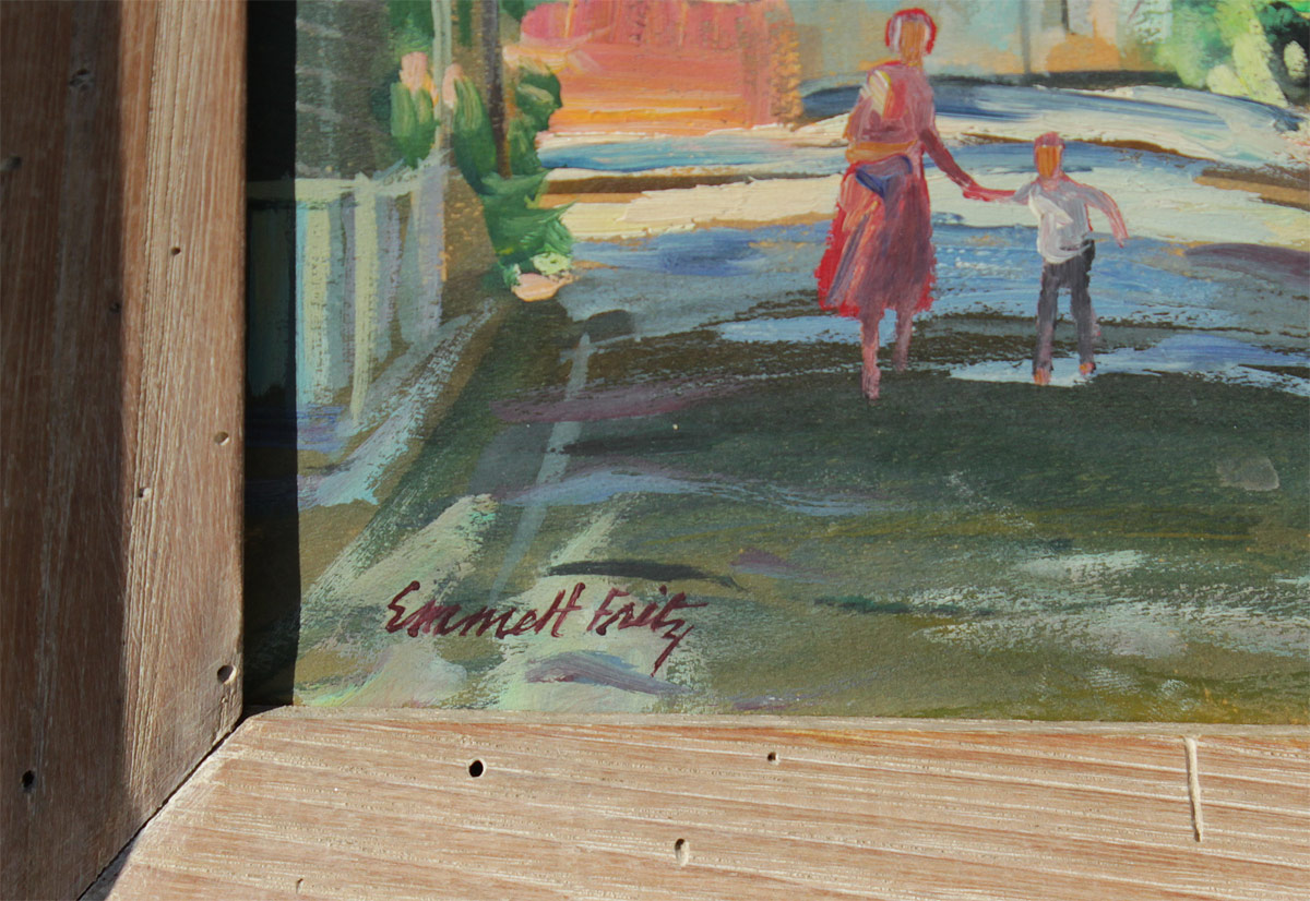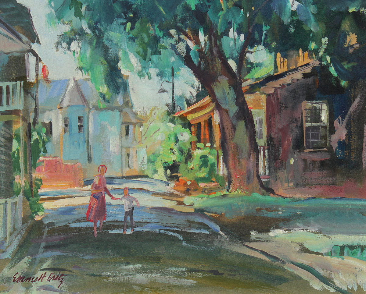 FRITZ, Emmett (John Emmett), (American, 1917-1995): St. Augustine Street Scene with Figures, Oil/Board, 8'' x 10'', signed lower left, original wood frame 11 1/2'' x 13 1/2''.