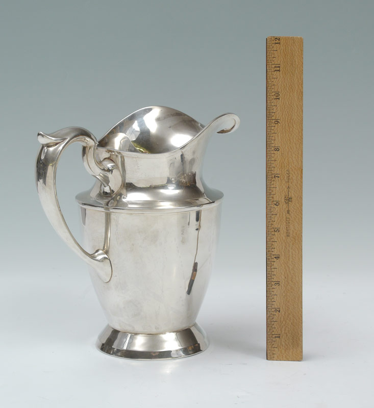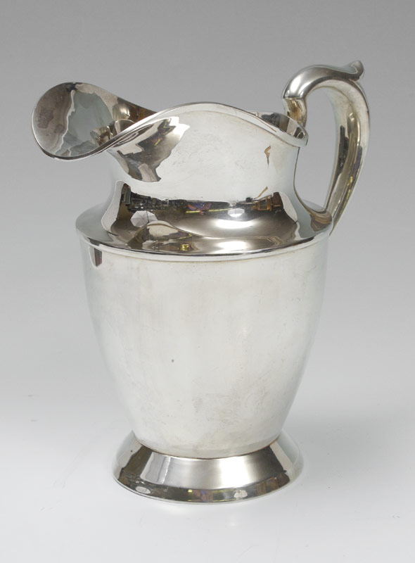 BALTIMORE SILVERSMITHS STERLING WATER PITCHER: Marked on base with Baltimore Silversmiths hallmark, Sterling 925/1000 Fine, retailers name Schofield Co., 1109. Measures 9'' h. x 9 1/4'', approx. 21.9 troy oz.