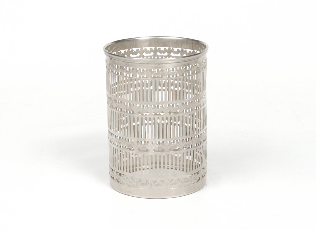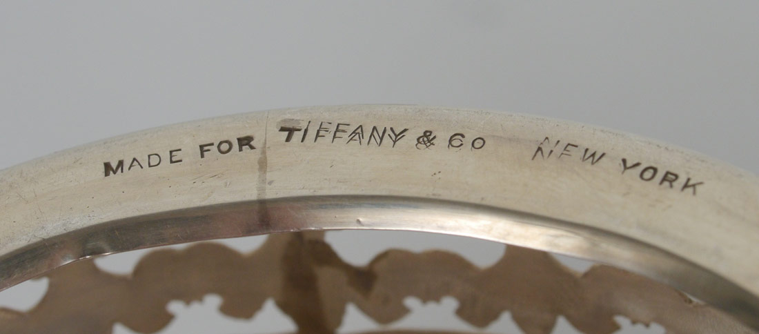 TIFFANY RETICULATED STERLING WINE HOLDER: Pierce work sides, marked on base ''Made for Tiffany & Co., New York, 1071, Sterling''. Measures 5 1/8'' h. x 3 3/4'', approx. 4.7 troy oz.