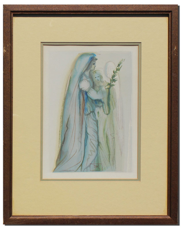 SALVADOR DALI WOODCUT: Heaven Canto 32, 13'' x 10 1/2'', signed in plate, wooden frame with wear, 17'' x 14''.