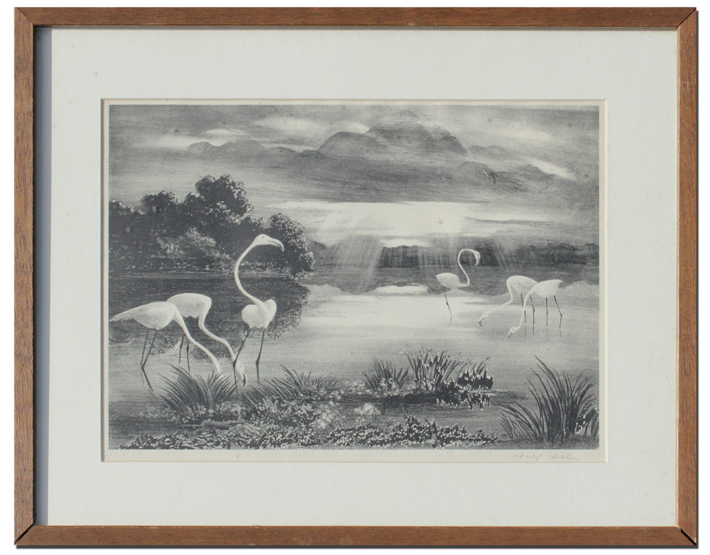DEHN, Adolf Arthur, (American, 1895-1968): Quiet Waters, Lithograph, Depicting Egrets or Herons Feeding from a Lake, Sight size 9 3/4'' x 13 1/2'', pencil signed lower right, framed 15'' x 18 1/2''.