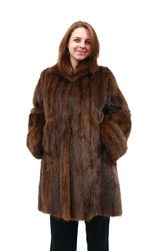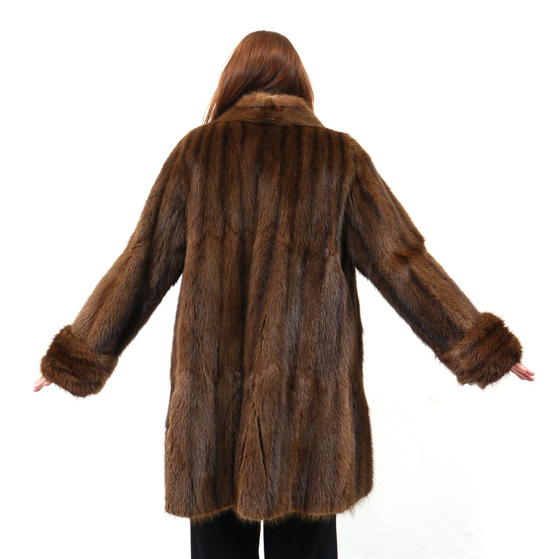 VINTAGE 1950'S MINK FUR JACKET: Swingy car coat length wide lapel and wide cuffs. Lucky Platt & Co. label. Measures approx. 38'' collar to hem, 19'' shoulder to shoulder and 23'' shoulder to cuff.