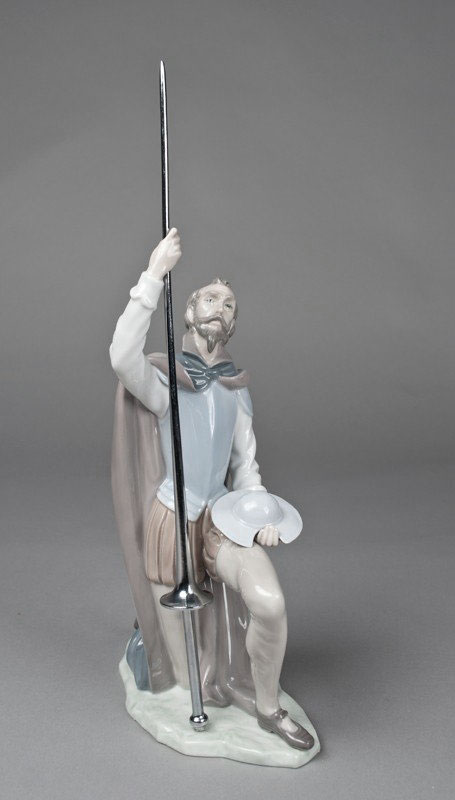 LLADRO PORCELAIN FIGURE DON QUIXOTE: ''The Quest'' #5224, Salvador Furio sculpture, issued 1984 retired 1998, figure 10 3/4'' x 8'' x 3 1/2'', approx. 14 1/2''h. with lance.