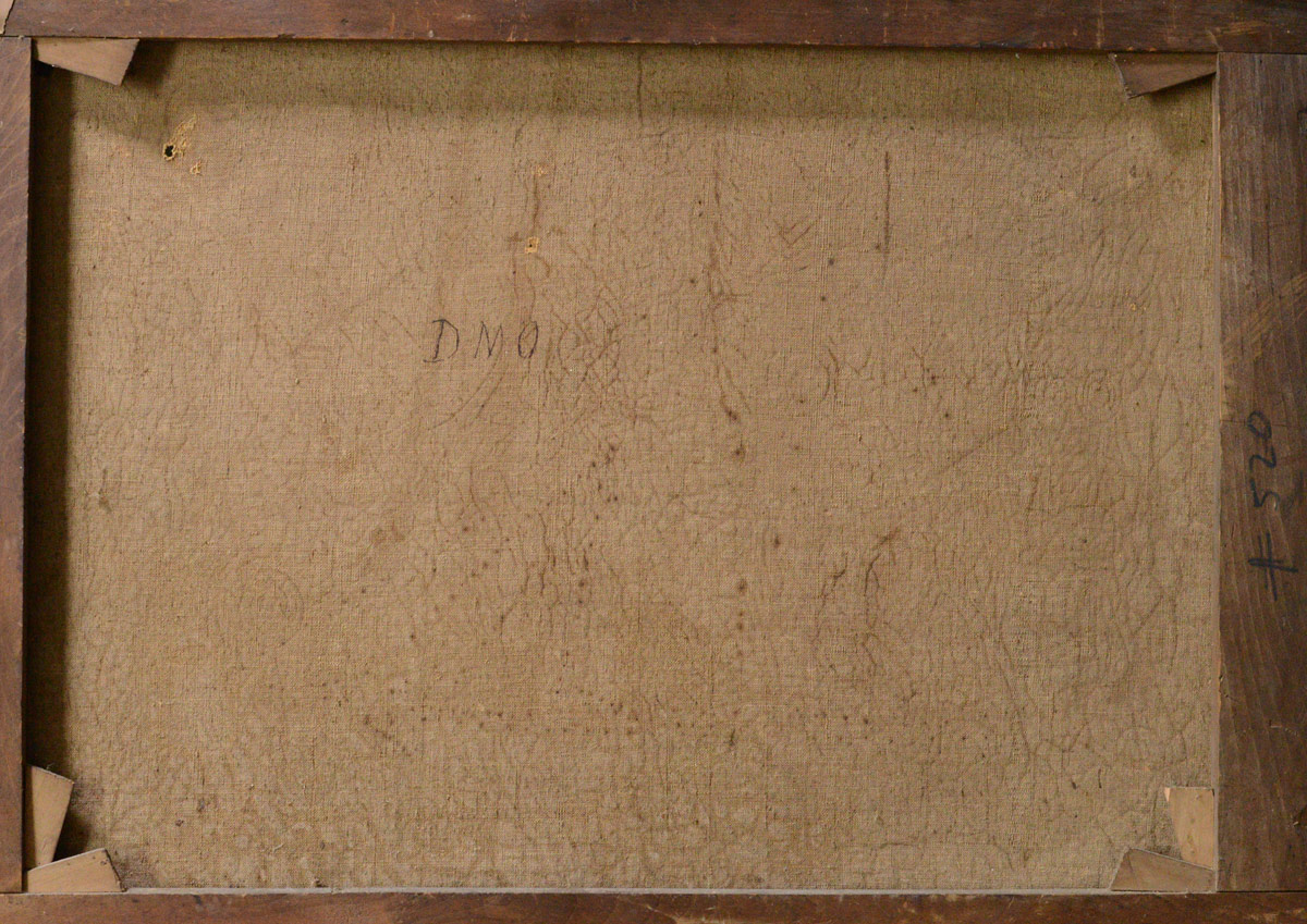 CONDITION: Needs extensive restoration with paint fleck mostly in the lower margin, stretcher bar wear, craquelure throughout, several small punctures.