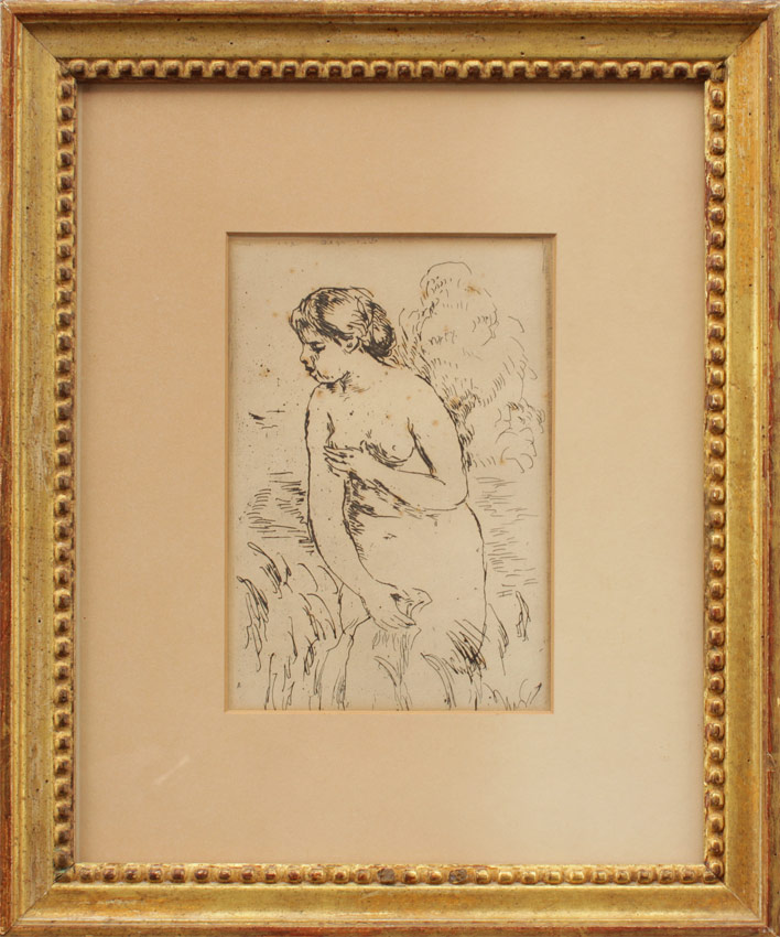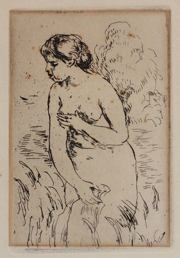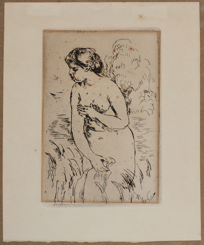 RENOIR, Pierre Auguste, (French, 1841-1919): ''Baigneuse debout, a mi-jambes'', Etching, Size with margins 8 3/4'' x 7 1/4'', impression size 6 1/2'' x 4 1/2'', framed 12 1/2'' x 10 1/2''.