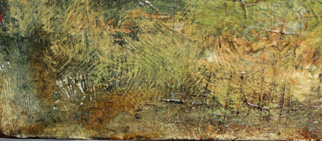CONDITION: Several flecks of paint loss, heavy craquelure in the lower left quadrant, needs cleaning.