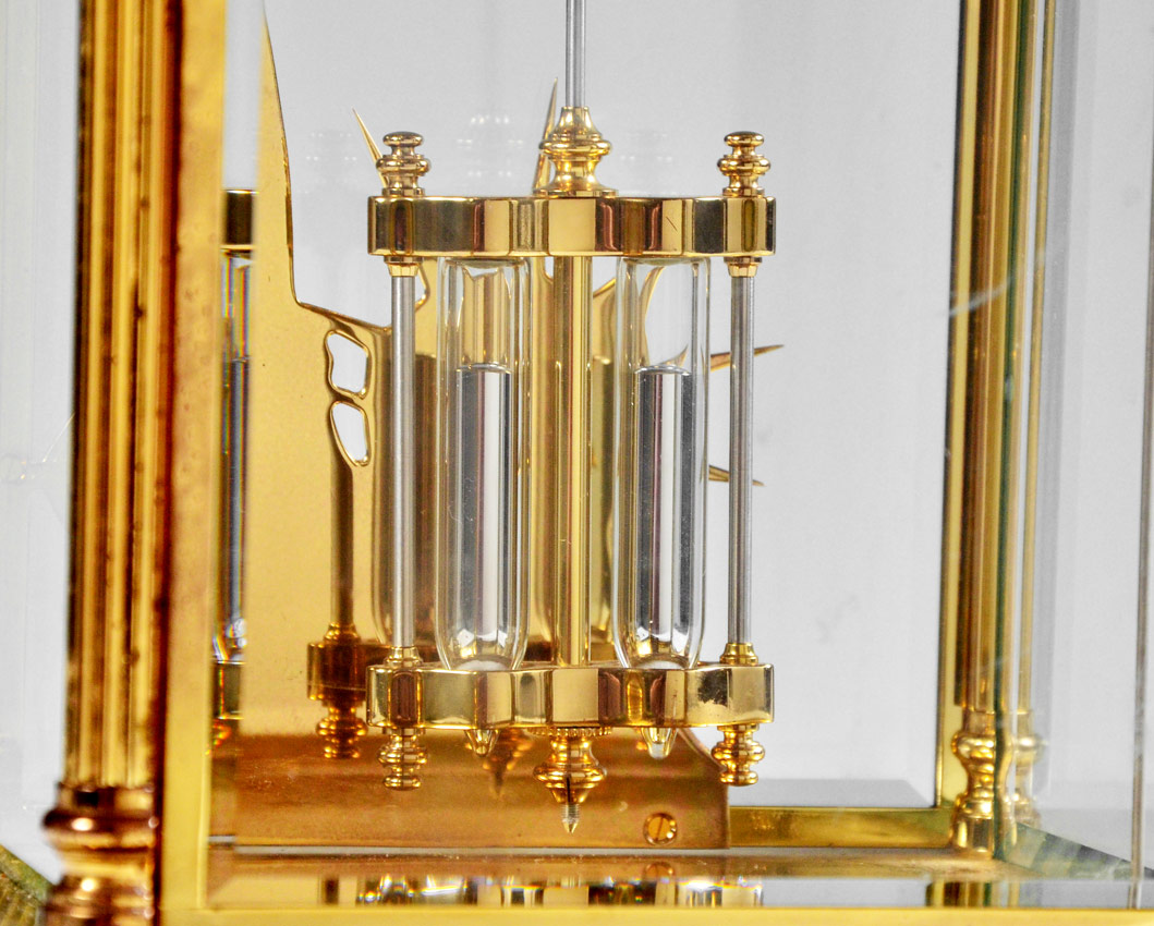 CONDITION: Spotting and uneven finish to brass. Currently running however not guaranteed to continue. Key and mercury pendulum in office.