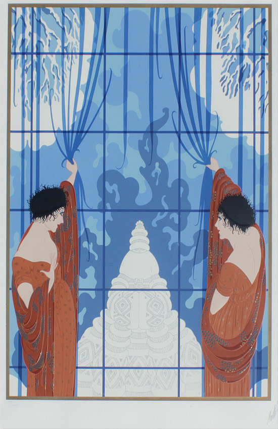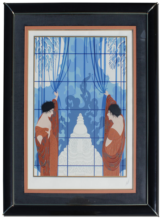 ERTE SERIGRAPH ''WINTER'S ARRIVAL'': Sight size 29'' x 20 1/2'', pencil signed lower right, #'d 179/300, custom lacquer frame w/matting 38 1/2'' x 30''.