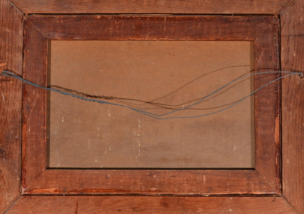 CONDITION: Needs cleaning, craquelure throughout, there are several pin hole punctures in the upper margin, and a puncture in the sky, also a paint fleck in the upper margin.