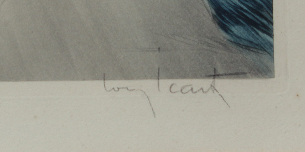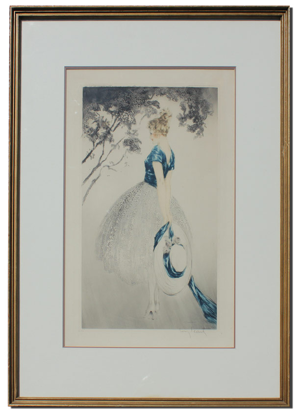 ICART, Louis, (French, 1888-1950): ''Nest'', Colored Etching, Sight size 21 1/2'' x 14'', pencil signature lower right, blind stamp lower left, pencil marking '85, gilt wood frame with minor wear 31 1/2'' x 23 1/4''.