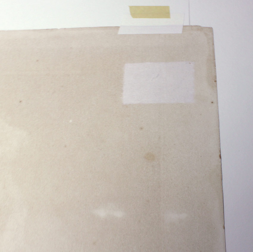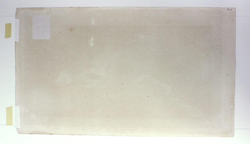 CONDITION: Mild toning, several pale blemishes in upper left corner, several small spots of foxing, not laid down, hinge mounted in upper corners, visible repair verso with opaque paper, small piece of upper left corner verso missing.