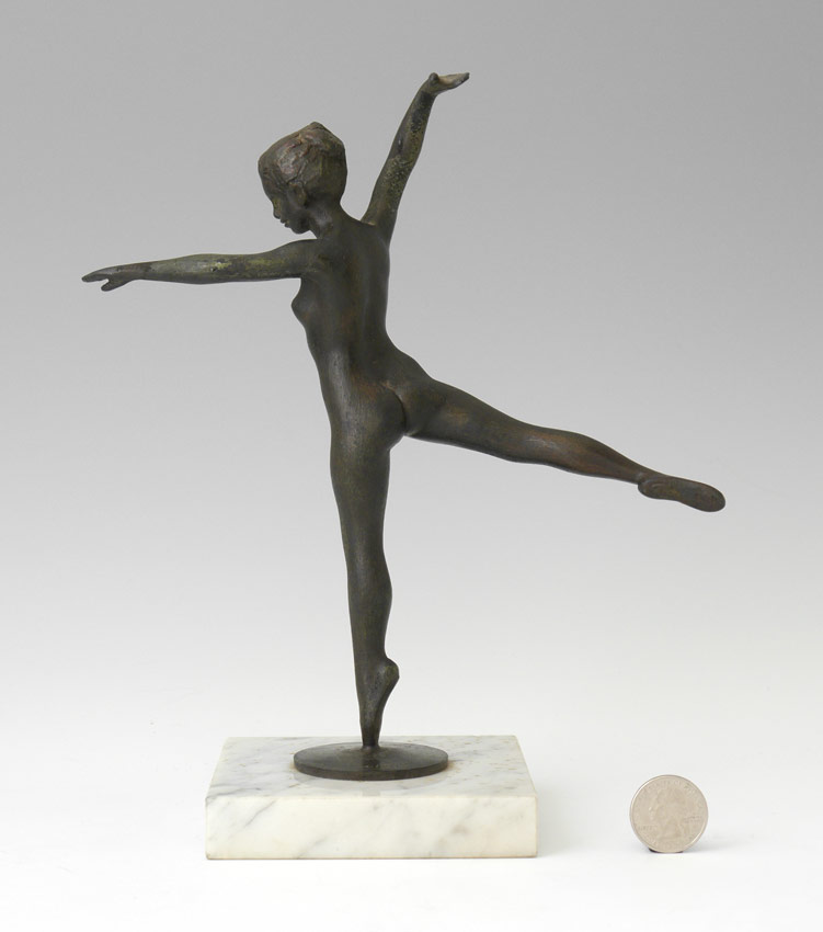 BROWN, Joseph, (American, 1909-1985): Ballerina Bronze, 9'' h. x 9'' w., incised signature, #'d 1/12, affixed to a marble plinth, overall 9 3/4'' h.