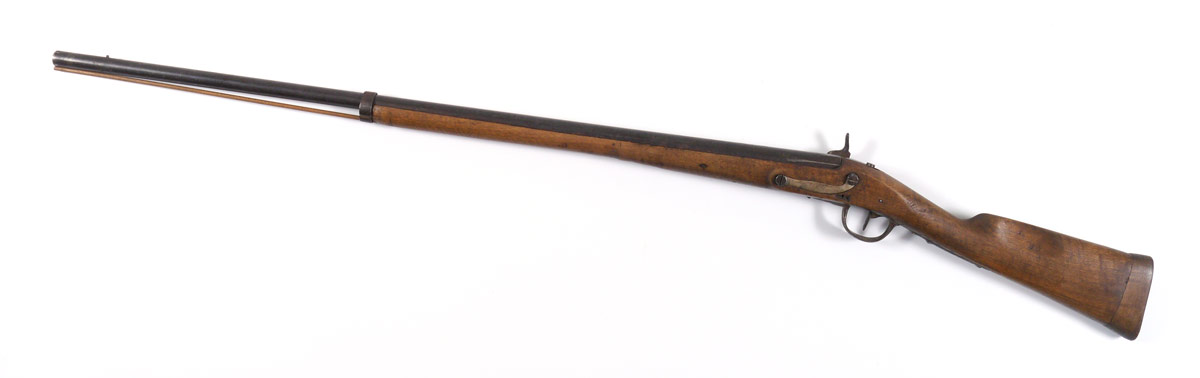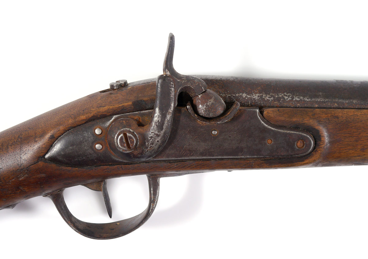 FRENCH MODEL 1777 MUSKET: Converted to percussion with St. Etienne lockplate. 40 1/2'' long .69 caliber smooth bore barrel. Walnut stock with forestock shortened, replacement cleaning rod. Infantry / unit stamps on stock. Action does not function. Overall 56 1/2'' long.