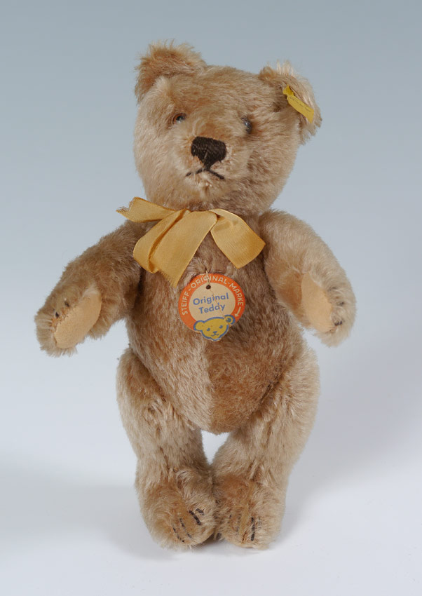 VINTAGE STEIFF MOHAIR ''ORIGINAL TEDDY'' BEAR: Original button, tag number 5305,2, and name tag. Measures 9 1/2'' l.